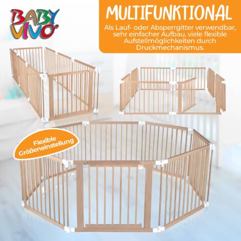 Perfekter Spielbereich für dein Baby! Dieses vielseitige Laufgitter aus natürlichem Holz bietet eine sichere Umgebung zum Spielen und Entdecken. Mit praktischer Tür für einfachen Zugang und magnetischer doppelter Kreidetafel/Whiteboard für kreative Aktivitäten. Verstellbar und erweiterbar - passt sich jedem Raum an. Die patentierbaren drehbaren Anschlüsse ermöglichen individuelle Formen. Ohne Werkzeug montierbar - innerhalb weniger Minuten aufgebaut. Mit glatt polierten Oberflächen und ohne schädliche Chemikalien. Ideal für Babys und Kleinkinder zum Krabbeln, Spielen und Lernen. Fördert die motorische Entwicklung und Kreativität. Ein echter Allrounder der mitwächst!