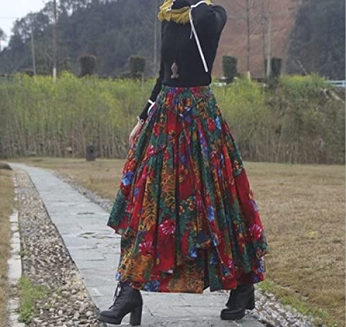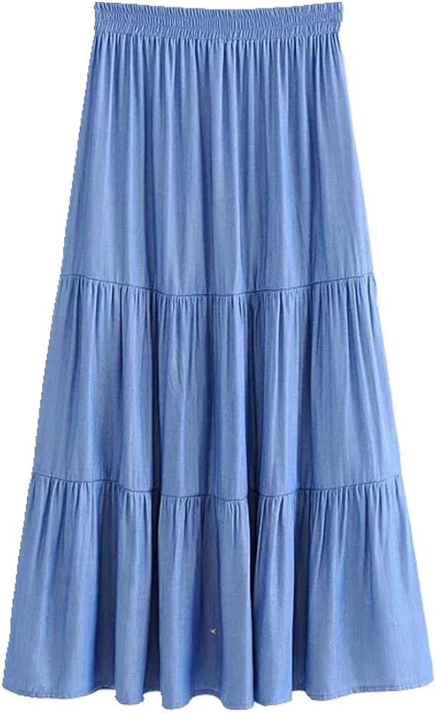 Langer Baumwoll-Maxirock Für Frauen - Elastische Taillen Mit Kordelzug | Sommer Strandrock
