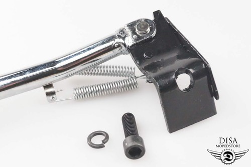 Praktisch und stylisch für deinen Roller! Dieser chromfarbene Seitenständer passt perfekt für Yamaha BWS und MBK Booster 50 Modelle. Einfach ausklappen und der Roller steht sicher in sportlicher Schräglage - viel bequemer als mühsames Aufbocken. Mit Feder, die automatisch zurückklappt - absolut verkehrstauglich! Macht das Abstellen deines Rollers zum Kinderspiel und sieht dabei noch richtig gut aus.