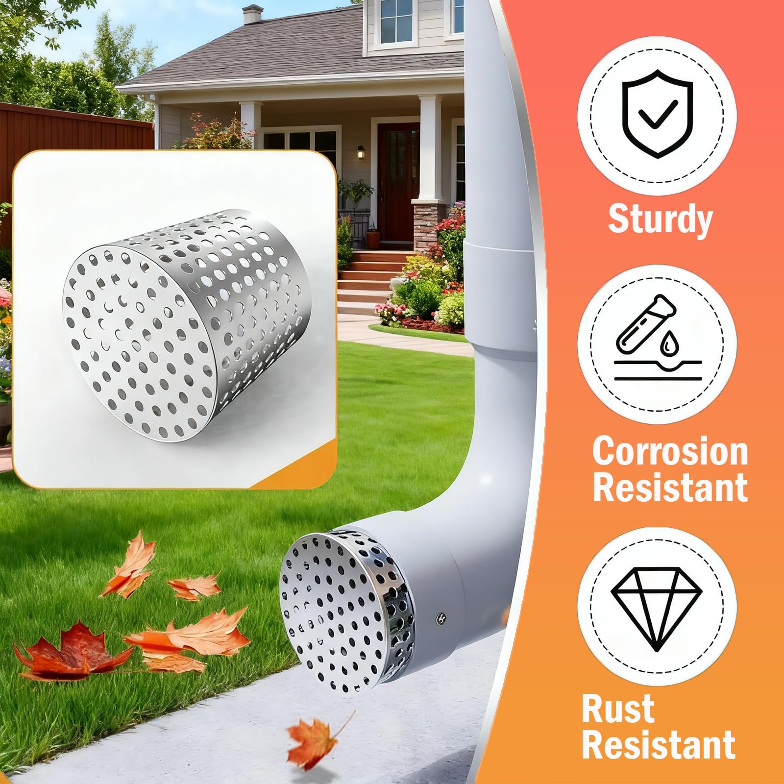 Kennst du das Problem? Im Herbst verstopfen Blätter deine Dachrinnen und Fallrohre - total nervig! Dieser Edelstahl-Laubschutz von KATISHYRO löst das Problem für immer. Aus robustem 304 Edelstahl gefertigt, ist er absolut rostfrei und hält ewig. Die Montage ist super einfach: Kein Werkzeug nötig, einfach in den Auslass des Fallrohrs schieben und fertig! Er passt für Durchmesser von 75-90mm - aber bitte vorher genau nachmessen! Der Schutz verhindert nicht nur Laub, sondern hält auch Vögel davon ab, Nester zu bauen und Mäuse oder Schlangen aus deinem Haus fern. Funktioniert übrigens auch super als Schutz für Lüftungsauslässe. Ein echter Allrounder für dein Zuhause, der dir viel Ärger und Reinigungsarbeit erspart. Einfach rein, fest schieben und dich über freie Abflüsse freuen!