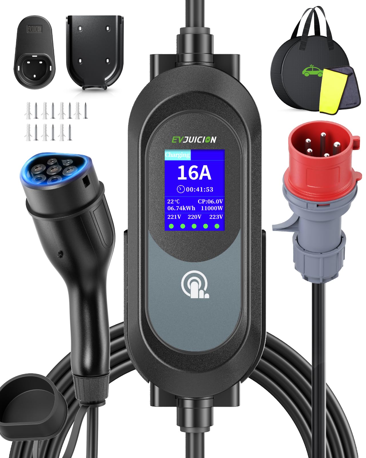Evjuicion Mobile Wallbox 11kW - Schnellladekabel Für E-Autos Mit Typ 2 Stecker