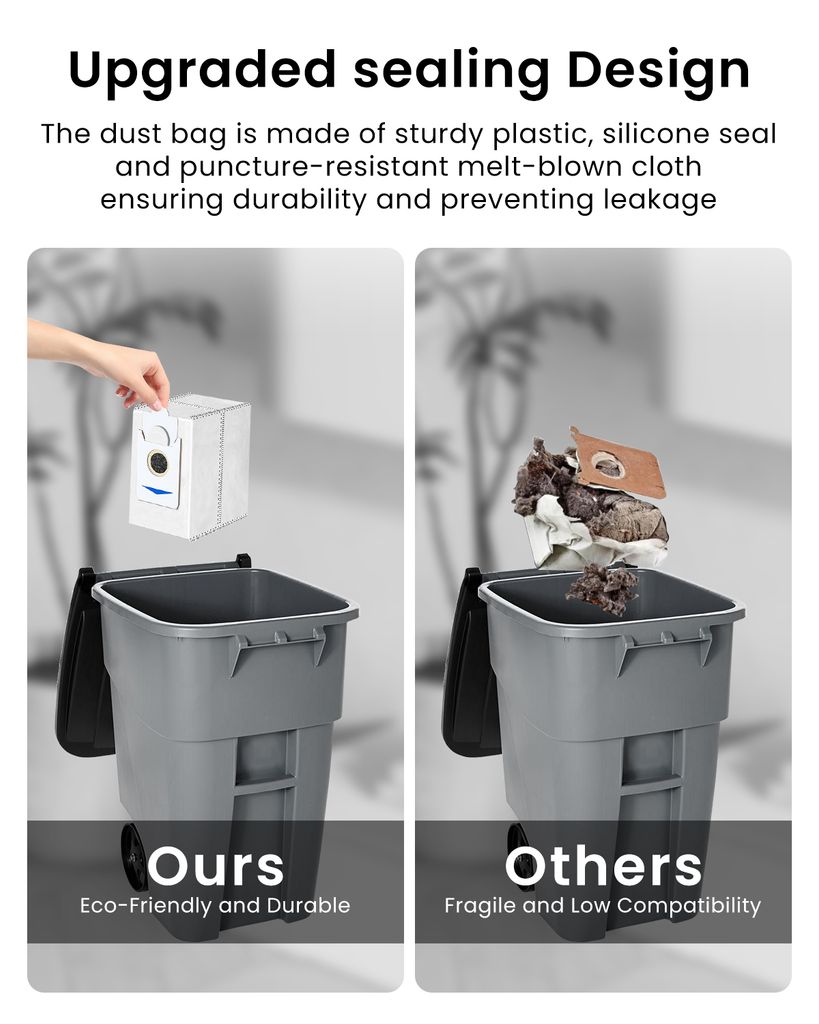 Nie wieder Staubbeutel nachkaufen! Dieses 12er-Set Ersatzbeutel für deinen Ecovacs Deebot T30 PRO Omni oder T30 Omni hält ewig. Jeder Beutel fasst 3 Liter und hält bis zu 60 Tage - je nach Nutzung. Mit 4-lagigem Filtersystem, das 99,9% des Feinstaubs einfängt. Super für Allergiker und Haustierbesitzer! Einfach zu wechseln - alten Beutel rausziehen, neuen einsetzen. Das praktische 12er-Pack reicht für über ein Jahr. Halte deinen Roboterstaubsauger immer einsatzbereit mit diesen hochwertigen Ersatzbeuteln.