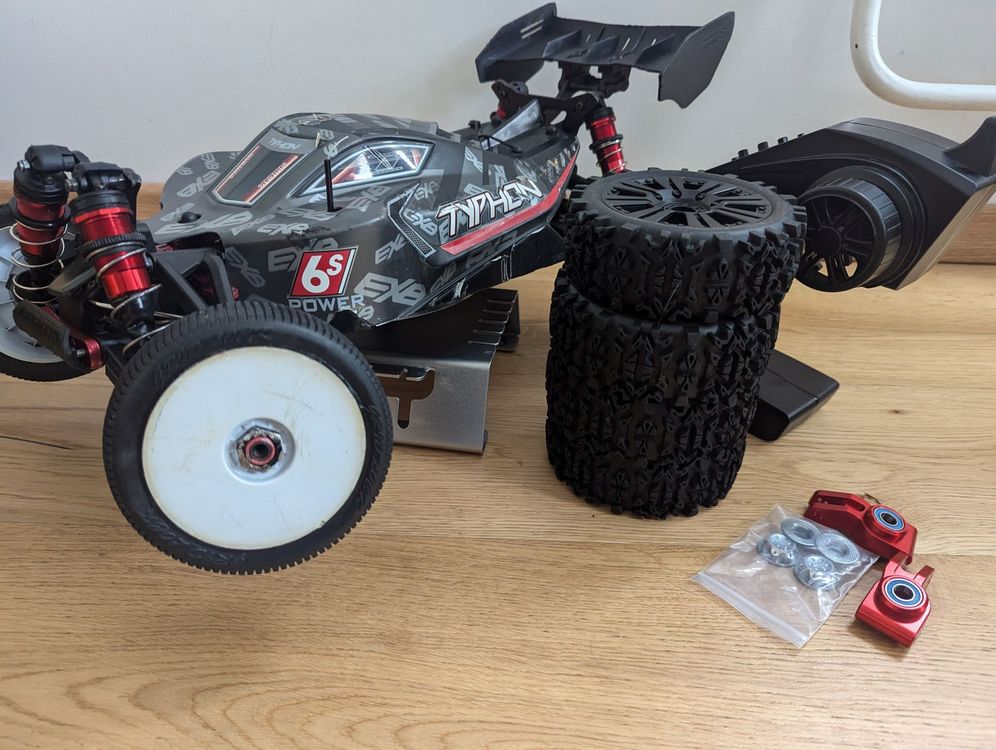 Mehr Stabilität für deinen ARRMA Typhon 6S! Diese AXspeed Radnabenadapter aus Aluminium verbreitern deinen RC-Truck um 20mm - für bessere Kurvenlage und mehr Fahrspaß. Im Set: 4 Adapter - also für alle Räder. Einfach montiert - keine Modifikationen nötig. Aus hochwertigem Aluminium gefertigt - leicht aber extrem stabil. Perfekt für Offroad-Einsätze, Drifting oder Rennen. Die breitere Spur sorgt für mehr Stabilität in schnellen Kurven und bei Sprüngen. Mach dein Typhon noch agiler und kontrollierbarer! Kompatibel mit 1/8 ARRMA Typhon 6S Modellen. Auch für andere ARRMA Trucks möglich - bitte Kompatibilität prüfen. Einfach die originalen Adapter ab, diese drauf und festziehen. Sofortiger Spürbarer Unterschied im Fahrverhalten! Für alle, die ihr RC-Car auf das nächste Level bringen wollen. Ob auf der Rennstrecke oder im Gelände - mit diesen Adaptern hast du einfach mehr Kontrolle. AXspeed Qualität für anspruchsvolle RC-Fans. Leichtes Upgrade, großer Effekt! Perfekt kombiniert mit breiteren Reifen. Mach dein Typhon zum echten Straßenkreuzer! Einfach genial für mehr Fahrspaß und bessere Performance. Deine Freunde werden staunen!