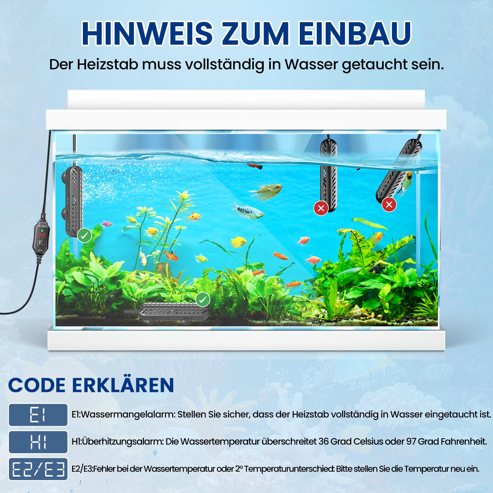Perfekt für deine Fische! Dieser Aquarium-Heizer sorgt für die ideale Wassertemperatur und ist super einfach zu installieren. Mit den praktischen Saugnapfhalterungen klemmst du ihn fix an die Aquarienscheibe. Das hochwertige Glas ist absolut sicher und langlebig. Der automatische Thermostat regelt die Temperatur ganz von alleine - so haben es deine Zierfische immer kuschelig warm. Spare dabei noch Energie, denn die effiziente Heiztechnologie verhindert lästige Temperaturschwankungen. Ob Guppys, Neonfische oder Garnelen - dieser Heizer ist für alle Aquarienbewohner geeignet. Tauchen, einstecken, fertig! Deine Fische werden's dir danken. Und das Beste: Die wasserdichte und explosionsgeschützte Verarbeitung gibt dir ein sicheres Gefühl. Mach dein Aquarium zur perfekten Wohlfühloase für deine Unterwasserfreunde! Inklusive 2 Saugnapfhalterungen für den sicheren Halt. Einfach genial, oder?