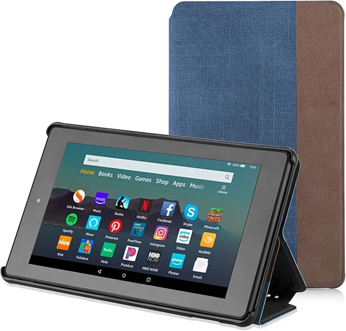 Die perfekte Schutzhülle für dein Fire 7 Tablet von der 9. Generation (2019)! Von Amazon selbst designt, passt sie wie angegossen und schützt dein Tablet vor Kratzern und Stößen. Das schlanke Design sieht nicht nur gut aus, sondern hat auch eine integrierte Standfunktion - super praktisch fürs freihändige Videoschauen oder Lesen. Ob im Hochformat für eBooks oder im Querformat für Filme, die Hülle hält dein Tablet sicher in Position. Die Magnetschließe sorgt dafür, dass alles fest verschlossen bleibt, und durch simples Öffnen und Schließen der Hülle wird dein Tablet automatisch aufgeweckt oder in den Ruhemodus versetzt. Aus premium Textilgewebe mit weichem Mikrofaser-Innenfutter, das das Display schützt. Alle Anschlüsse, Tasten und Kameras bleiben natürlich frei zugänglich. Nur für die 9. Generation von 2019 geeignet - also genau das Richtige für dein Fire 7!