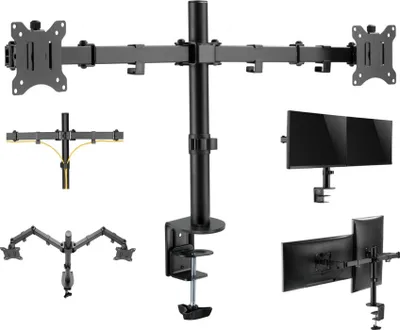 Ordnung am Arbeitsplatz? Mit dieser Doppel-Monitorhalterung klappt's! Trägt zwei 17-40 Zoll Monitore (bis 12 kg pro Arm) - nebeneinander oder übereinander. Voll beweglich: neigen, drehen, rotieren, höhenverstellen (bis 815 mm). VESA 75/100 mm kompatibel. Mit Kabelmanagement und Werkzeugablage. C-Klemme oder Tüllenmontage wählbar. Testet auf 20.000 Bewegungen - made to last! Schaff dir deinen perfekten Arbeitsplatz - ohne Kabelsalat!