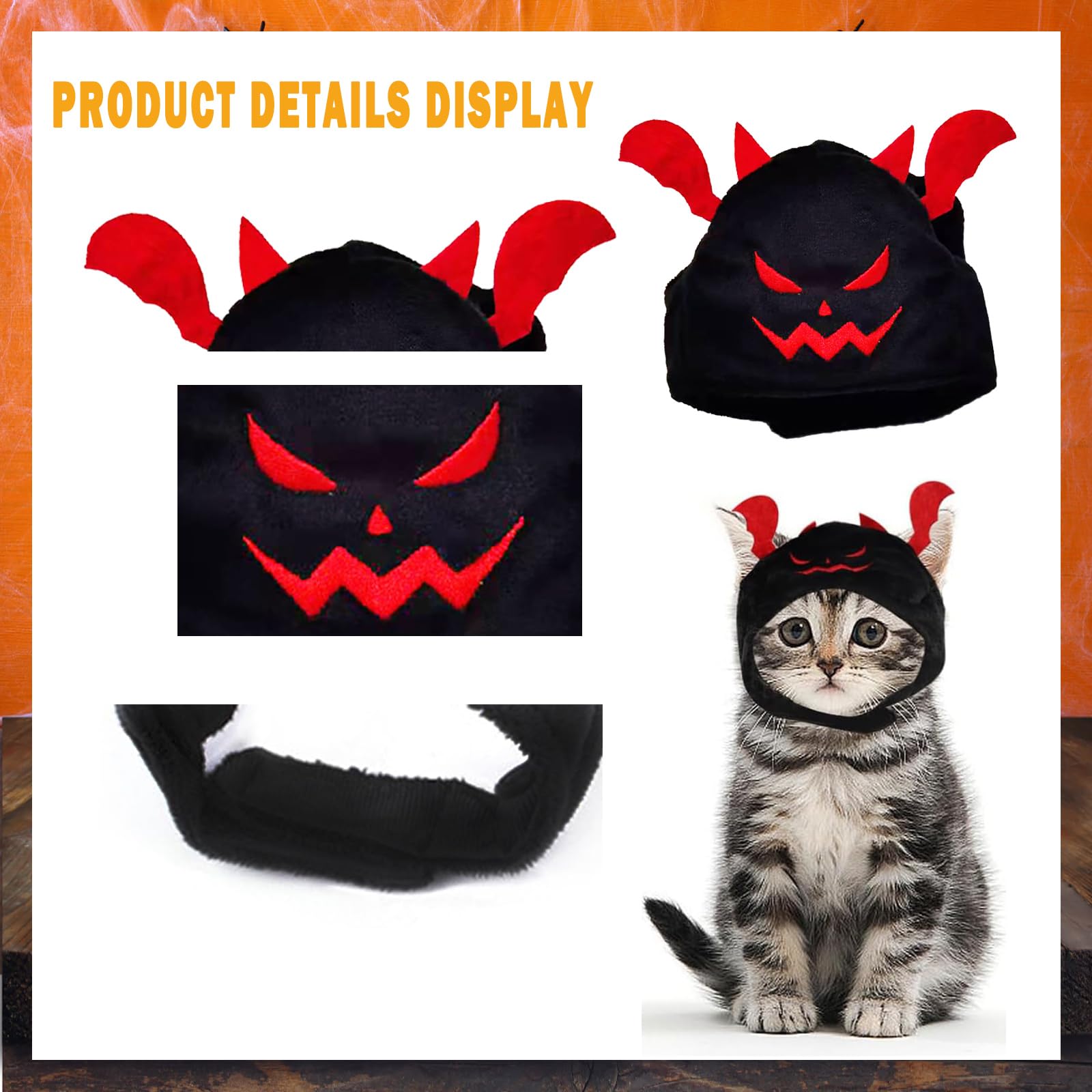 Perfekt für die Grusel-Saison! Dieses 2-teilige Set mit niedlichen Halloween-Hüten im Kürbis- und Teufelsdesign bringt deinen Hund oder deine Katze in Partylaune. Aus weicher Baumwolle gefertigt, schonen die Hüte das Fell und sind dank elastischem Band und Klettverschluss an jeden Kopf- und Halsumfang anpassbar. Ideal für kleine bis mittelgroße Haustiere - so wird dein Liebling zum Star auf jeder Halloween-Party! Die lustigen Motive sorgen für gruseligen Spaß bei Festumzügen, Kostümpartys oder Fotoshootings. Übrigens: Die Hüte wärmen auch super an kühlen Herbstabenden. Material: Baumwolle, Farbe: Orange + Schwarz, verstellbar für Halsumfang 20-40 cm. Einfach anziehen, festkletten und los geht der Spuk!