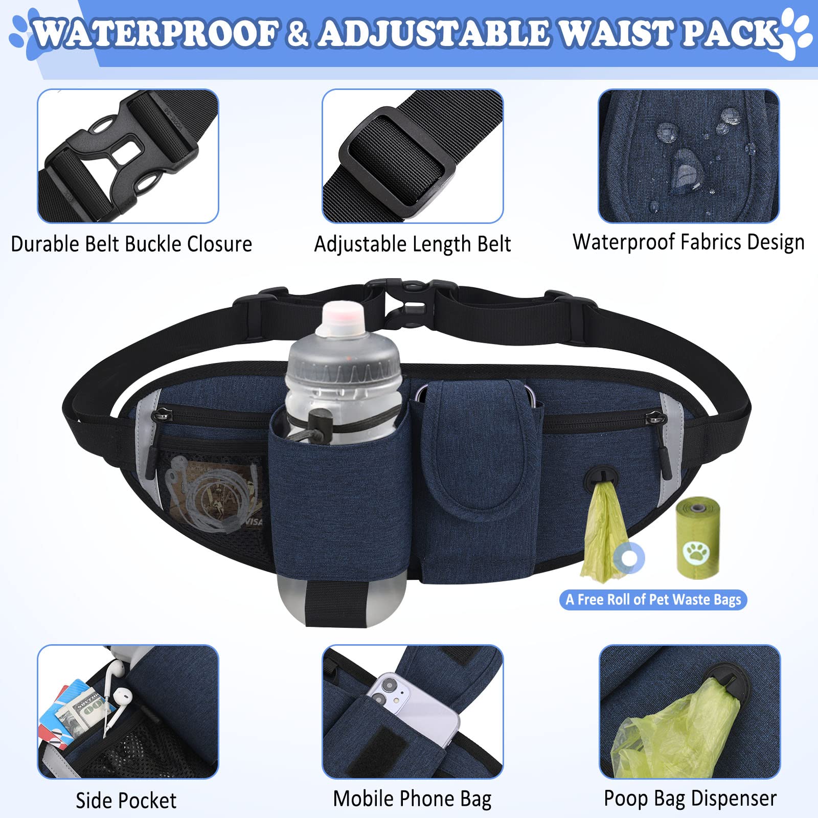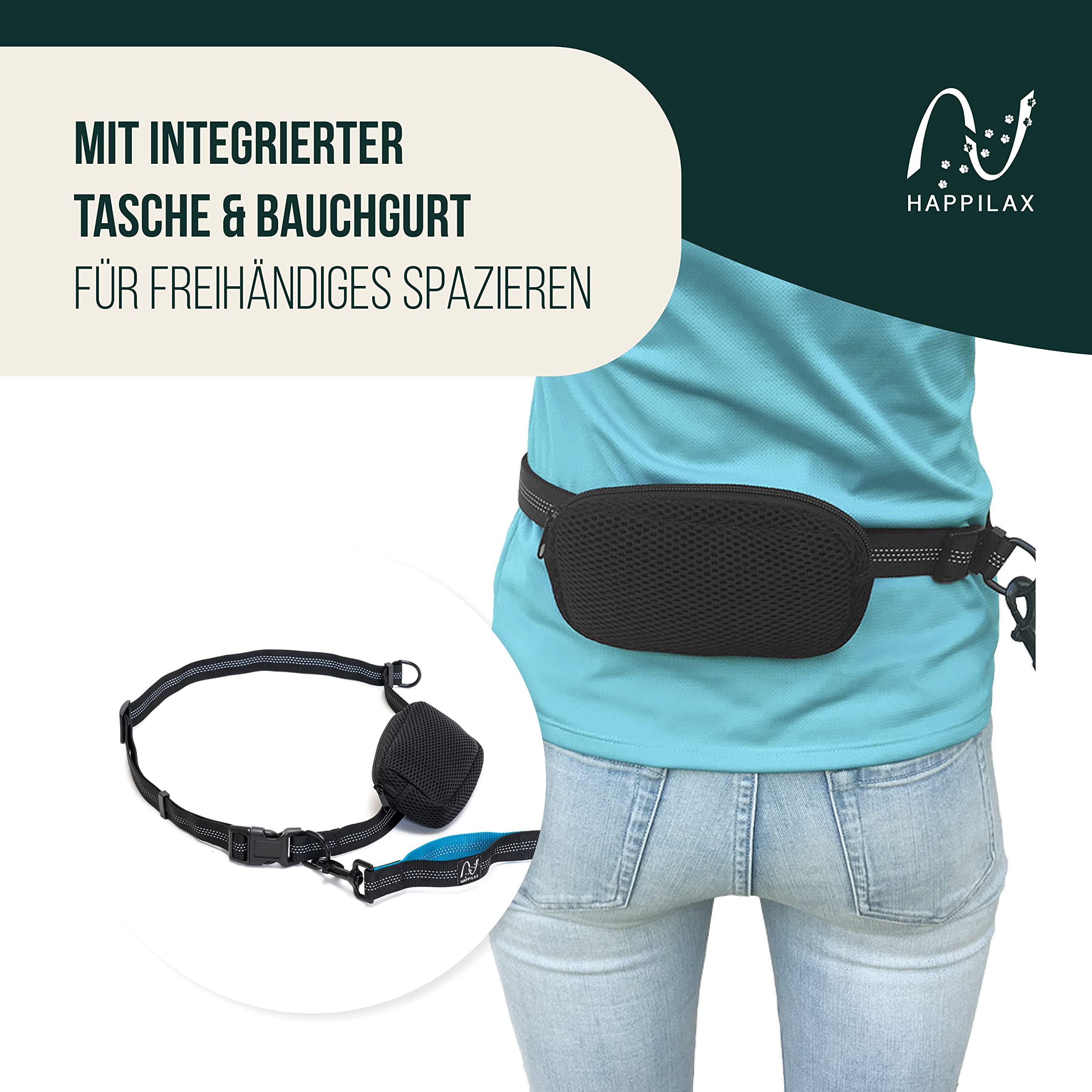 Joggingleine Für Hunde Mit Bauchtasche - Handfreie Leine Mit Stoßdämpfer, Reflektierend