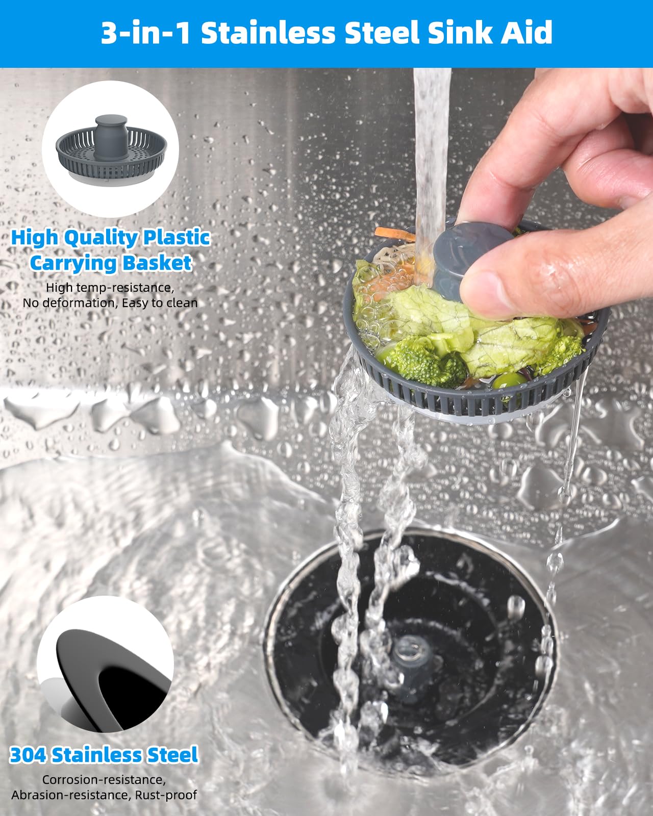 2 Stück 3-in-1 Abflusssieb Für Küchenspüle - Rostfrei Für 75-86 Mm