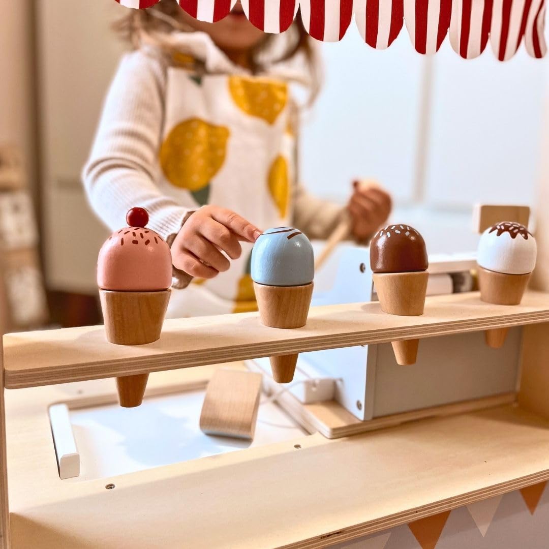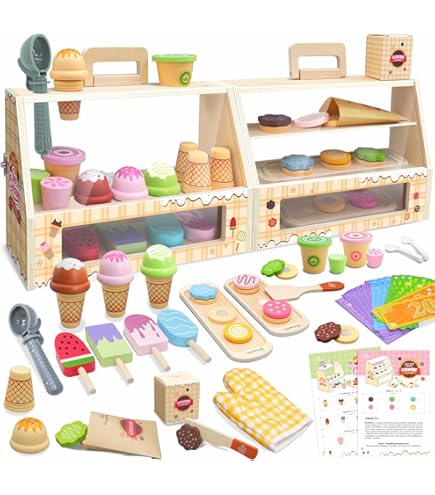 Holz Café-Eisdiele Für Kinder 2-in-1 - Rollenspiel Spielzeug Mit 76 Teilen Ab 3 Jahren