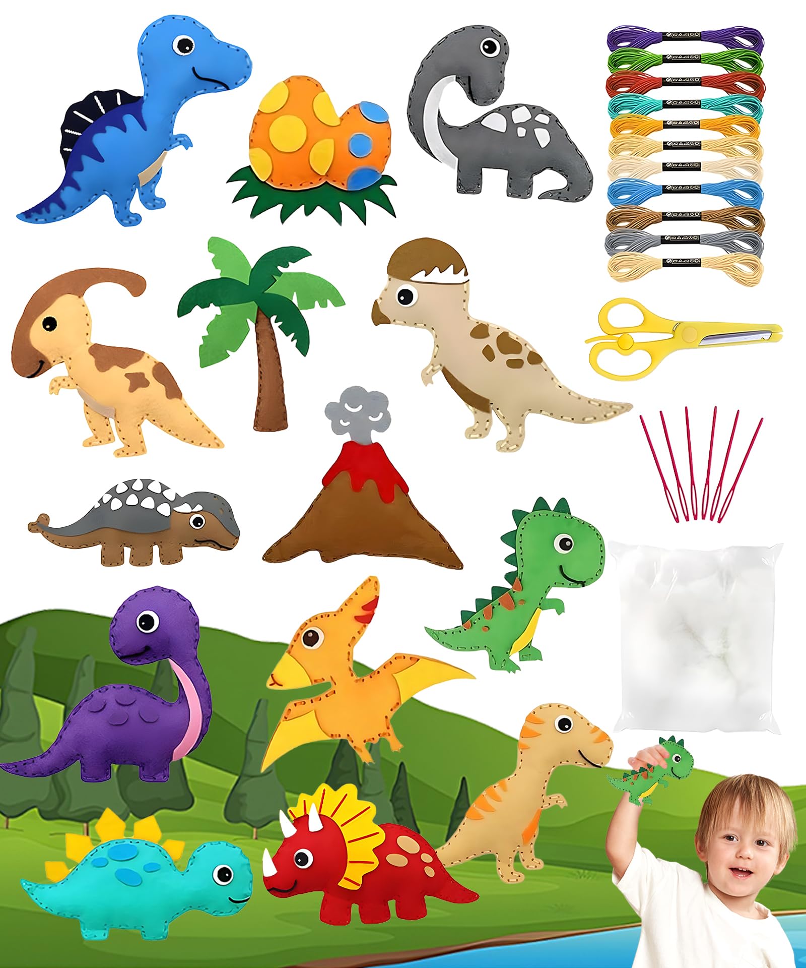 Nähset Für Kinder - DIY Filztiere Dinosaurier Mit Plastiknadeln