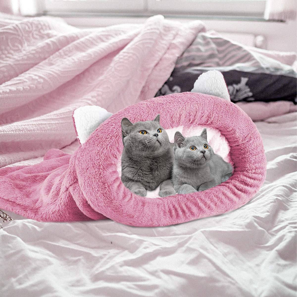 Schlafsack Höhle Für Kleine Hunde & Katzen - Gemütliches Haustierbett 60x55cm