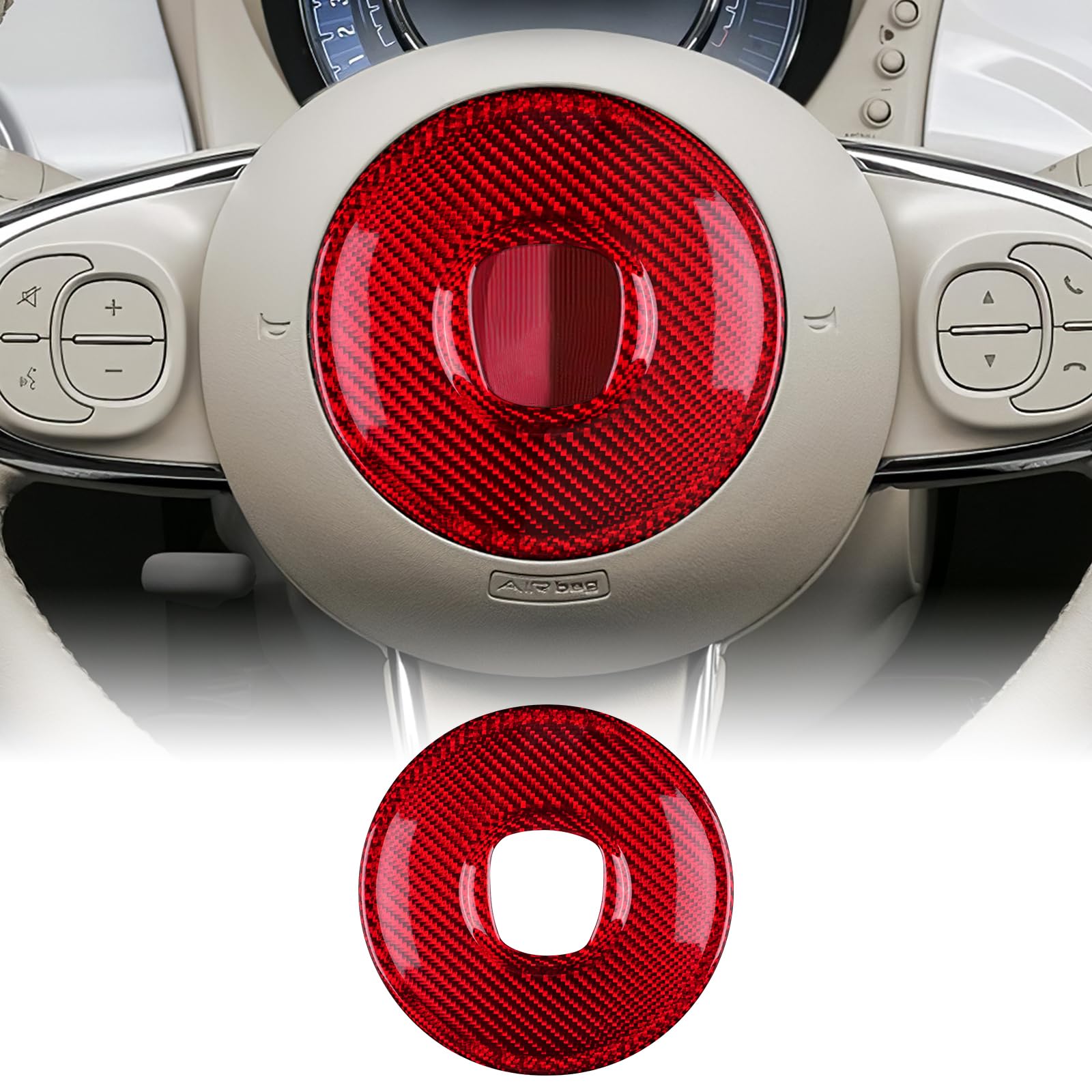 Verpasse deinem Fiat 500 Abarth einen sportlichen Look! Diese Kohlefaser-Lenkradabdeckung verwandelt dein Lenkrad in ein echtes Highlight. Perfekt passend für Modelle von 2008-2023. 🏎️\n\nAus hochwertigem Kohlefasermaterial mit UV-lackierter Oberfläche - robust, kratzfest und langlebig. Die Textur fühlt sich super an und sieht einfach premium aus.\n\nEinfache Installation mit dem mitgelieferten Klebeband. Keine Spezialwerkzeuge nötig! Schützt dein Original-Lenkrad vor Abnutzung und verleiht dem Innenraum sofort mehr Sportlichkeit. Ein kleines Upgrade mit großer Wirkung für deinen Abarth!