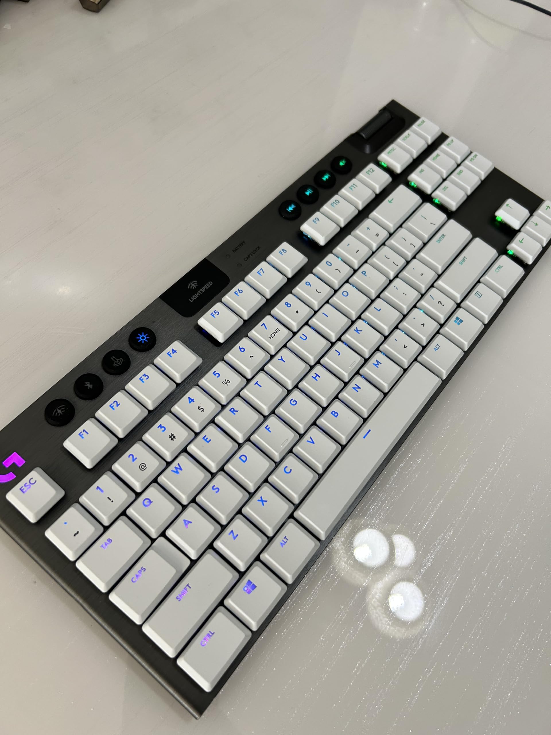 Verpasse deiner Logitech-Tastatur ein neues Look! Dieses 109-teilige Tastenkappen-Set passt perfekt auf G913, G915, G813 und deren TKL-Versionen. Aus hochwertigem ABS-Material - langlebig und verschleißfest. Die weißen Kappen sind mit Wärme-Sublimation bedruckt - verblassen nicht und kratzen nicht ab. Inklusive Keycap-Puller für einfachen Wechsel. Perfekt für US-Layout Tastaturen. Gib deinem Gaming-Setup eine persönliche Note oder tausche abgenutzte Kappen aus. Einfach zu montieren, super Tippgefühl. Mach deine Tastatur wieder wie neu! Achtung: Nur Tastenkappen, keine komplette Tastatur. Wähl andere Farben per Nachricht - schwarz, rot, blau, lila oder grün verfügbar.
