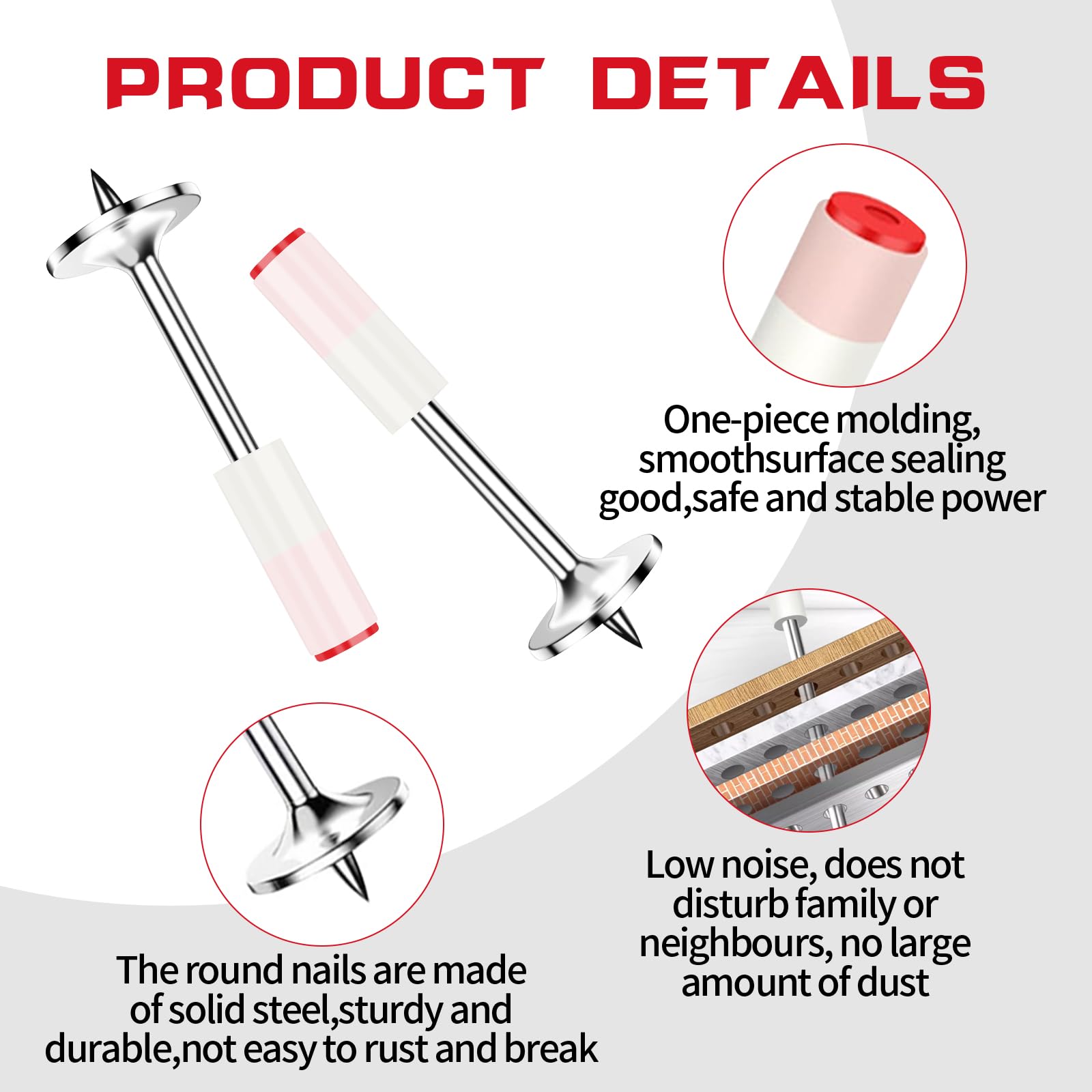 Profiqualität für deine Bauprojekte! Diese 50 Stück Nägel mit Gewinde sind perfekt für deine Nagelpistole. Mit Durchmesser 7,3 mm und M8 Gewinde - ideal für Stahl, Betonwände und Dachpappennägel. Im Set enthalten: 50 Nägel mit Gewinde plus 50 passende M8 Muttern. Hergestellt aus hochfestem Stahl mit ausgezeichneter Korrosions- und Verschleißfestigkeit. Die spezielle Wärmebehandlung sorgt für maximale Haltbarkeit und Festigkeit. Perfekt für verschiedene Anwendungen: Gebäude, Autos, Schiffe, Flugzeuge, Maschinen, Elektrogeräte, Möbel und mehr. Der Reißziehdorn, extra lange Nietkörper und flache Rundkopf machen die Befestigung zum Kinderspiel. Einfache Handhabung mit deiner Nagelpistole - einfach laden, positionieren und abfeuern! Die Bolzenanker gewährleisten eine sichere und dauerhafte Montage ohne Lockerung. Kompatibel mit Kunststoff, Holzwänden, Hohlwänden, Eisenhaut und vielen anderen Materialien. Ob du Heimwerker oder Profi bist - diese Nägel sind deine zuverlässige Wahl für sicheres und langlebiges Befestigen. Ein unverzichtbares Werkzeug für jedes Bauvorhaben!