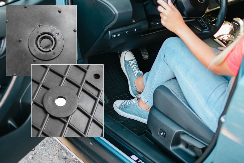 Die rutschfeste Unterseite mit Noppen hält die Matten sicher an Ort und Stelle - auch ohne extra Haltepunkte. Reinigen geht super einfach: Einfach mit Wasser abspülen oder mit einem feuchten Tuch abwischen.