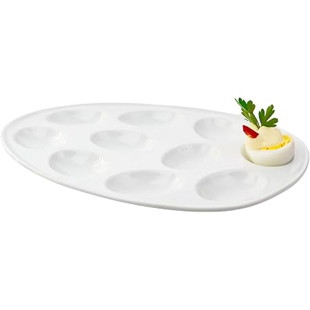 Frühstück mal richtig stylisch! Dieser weiße Porzellan-Eierteller mit 6 Fächern ist nicht nur super praktisch, sondern sieht auch noch richtig edel aus. Mit seinen Maßen von 19x19x3cm findet er Platz für alle deine Eier - ob gekocht, pochiert oder frisch aus dem Kühlschrank. Das coole Wellen-Design am Rand gibt ihm diesen besonderen Look, der in jede Küche passt. Aus hochwertigem Porzellan gefertigt, ist er robust und hält auch mal einen kleinen Stoß aus. Die glatte Glasur macht ihn super einfach zu reinigen - einfach in die Spülmaschine oder mit etwas Seifenwasser abwaschen. Aber er kann noch mehr: Perfekt für Mini-Vorspeisen, Fingerfood oder als Osterdekoration. Und das Beste: Mikrowellengeeignet ist er auch! Ein echter Allrounder für deine Küche, der sich sowohl im Kühlschrank als auch auf dem Esstisch gut macht.