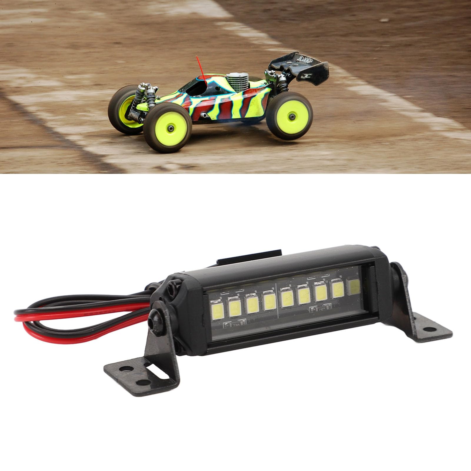Bring Licht ins Dunkel mit dieser professionellen LED-Lichtleiste für deinen RC Crawler! Mit 20 hochhellen LEDs sorgt sie für beste Sichtverhältnisse bei Nachtfahrten oder in dunklem Gelände. Die Leiste ist aus robuster Aluminiumlegierung gefertigt - verformt sich nicht, nutzt sich nicht ab und hat eine lange Lebensdauer. Mit ca. 98mm Länge und 16,5mm Breite passt sie perfekt auf die meisten 1/10 RC Crawler wie Axial SCX10 Modelle. Die Installation ist super einfach: Einfach auf das Dach montieren, mit den beiliegenden Schrauben und Muttern befestigen und an die Stromversorgung (5-14V DC) anschließen. Die umgekehrte L-förmige Halterung ermöglicht flexible Montagemöglichkeiten. Das coole Design mit der Gussschale macht dein RC-Auto nicht nur funktionaler, sondern auch noch stylischer. Perfekt für alle, die ihre Nachtfahrten auf das nächste Level bringen wollen!