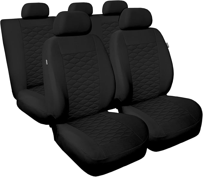 Im Set enthalten: 2 Vordersitzbezüge (118x56cm), 1 Rücksitzlehne (135x76cm), 1 Rücksitzkissen (135x56cm) und 5 Kopfstützenbezüge (30x27cm). Spezielles Airbag-Design für maximale Sicherheit - die Airbags können im Notfall problemlos auslösen.