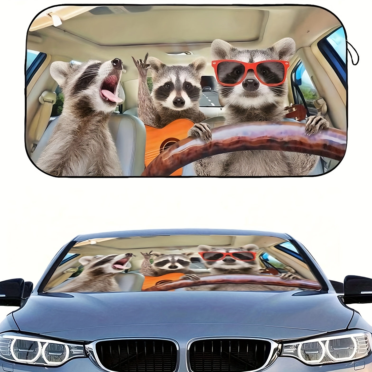 Lustige Waschbär-Sonnenblende Für Auto & SUV - Faltbarer Sonnenschutz Für Windschutzscheibe 140x70 Cm