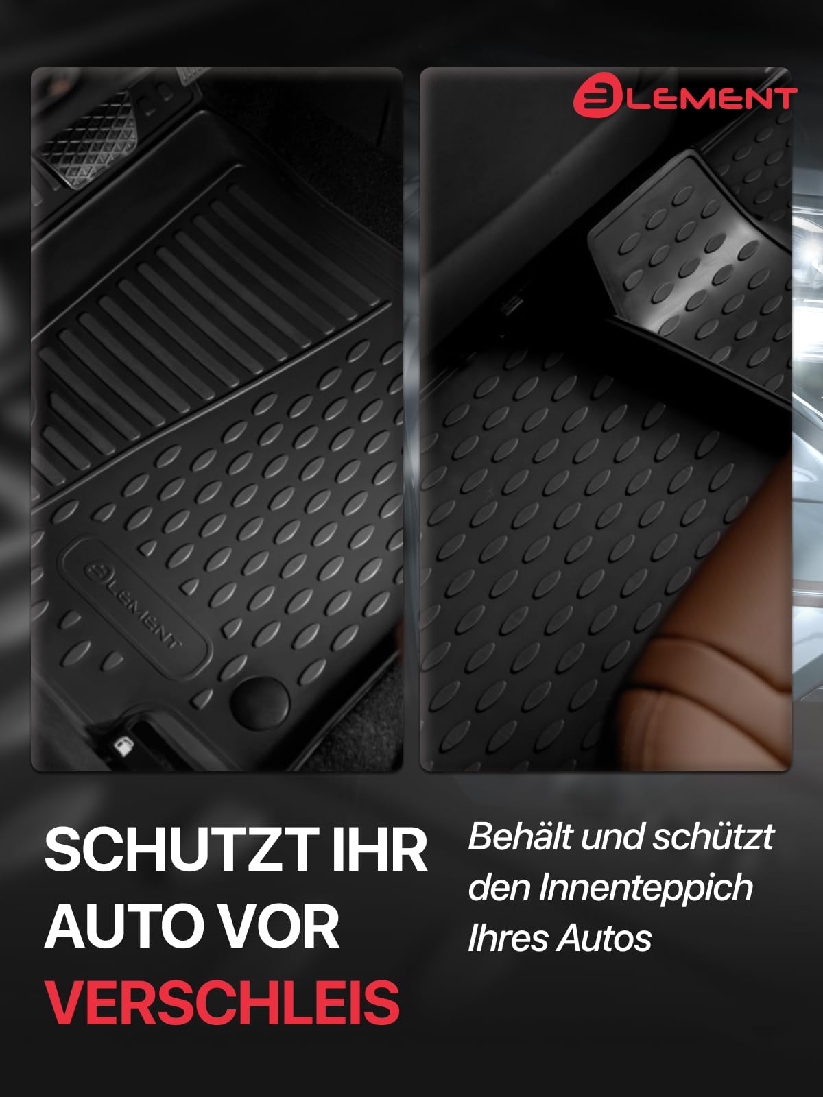 Hey, alle Toyota Hilux Fahrer! Diese Element 3D Gummimatten sind die perfekte Lösung für deinen Pickup. Egal ob du auf Baustellen unterwegs bist, im Gelände fährst oder einfach nur einen zuverlässigen Schutz für deinen Innenraum suchst - damit bist du bestens ausgestattet.\n\nDie Matten sind aus hochwertigem TPE-Kunststoff gefertigt - das ist kein billiger Schaumstoff oder Plastik, sondern richtig stabiles, flexibles Material. Und das Beste: Sie sind komplett geruchsneutral!\n\nWas diese Matten so besonders macht:\n• 100% passgenau für Toyota Hilux Mk8/VIII von 2015-2024\n• 3-5 cm hoher umlaufender Rand - hält auch größere Mengen Schmutz und Wasser zurück\n• Verstärkt im Pedalbereich für extra Langlebigkeit\n• Aus TPE - umweltfreundlicher als herkömmliche Gummi-Matten\n\nDer Allwetterschutz ist einfach fantastisch. Egal ob Regen, Schnee, Matsch oder Sand - diese Matten halten alles zurück. Dein Teppich darunter bleibt sauber und trocken. Und sie sind 100% sicher und geruchlos - kein unangenehmer Gummi-Gestank.\n\nDie Herstellung ist richtig durchdacht: Die Matten werden mit digitalen Präzisions-Laserscannern maßgenau angefertigt. Das bedeutet: Sie liegen perfekt an, verrutschen nicht und bedecken wirklich den gesamten Fußraum.\n\nDie Reinigung ist super einfach: Einfach rausnehmen, abspülen, trocknen lassen und wieder rein - schon sehen die Matten aus wie neu. Kein langes Schrubben, kein kompliziertes Saubermachen.\n\nDas Design ist nicht nur praktisch, sondern sieht auch noch gut aus. Die schwarze Farbe passt zu jedem Innenraum und die 3D-Struktur gibt den Matten einen modernen Look.\n\nAlso, wenn du deinen Hilux vor Schmutz und Abnutzung schützen willst und Wert auf Qualität und perfekte Passform legst, sind diese Element 3D Matten genau das Richtige. Damit bleibt dein Fahrzeuginnenraum länger schön und du hast weniger Arbeit mit der Reinigung. Einfach praktisch!