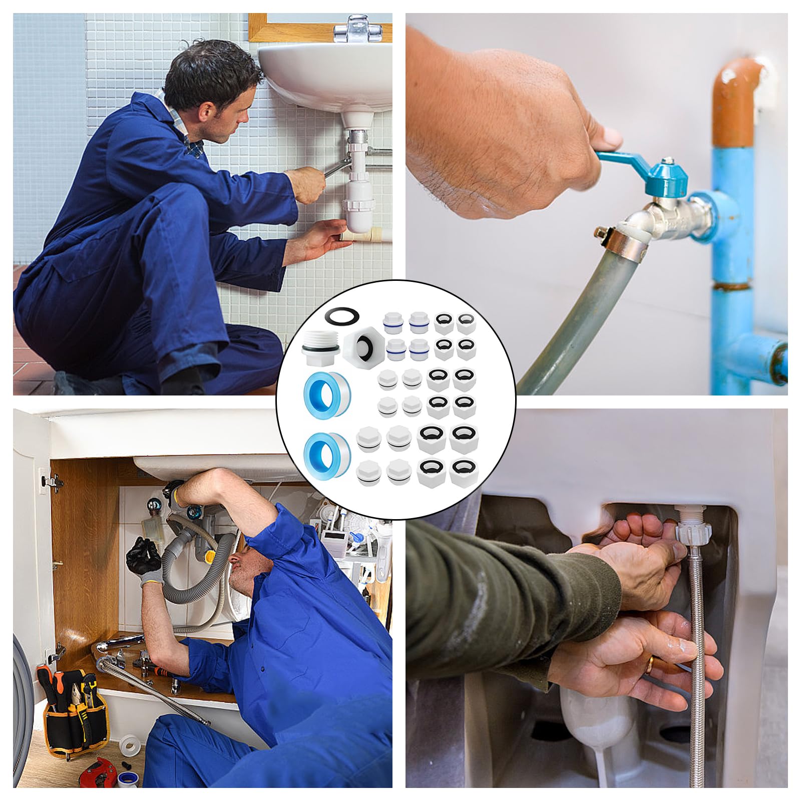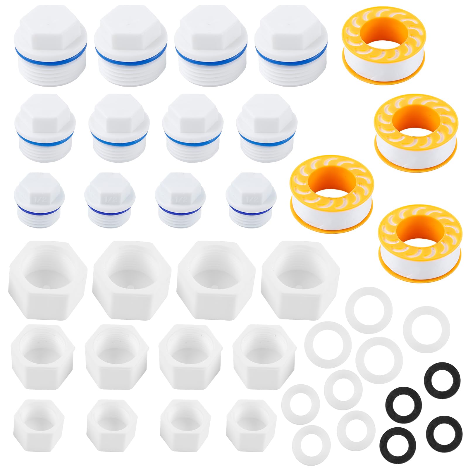 24 Stück Blindstopfen Set Für Wasserleitungen - 1/2", 3/4", 1" Mit Dichtungen & Fugenband
