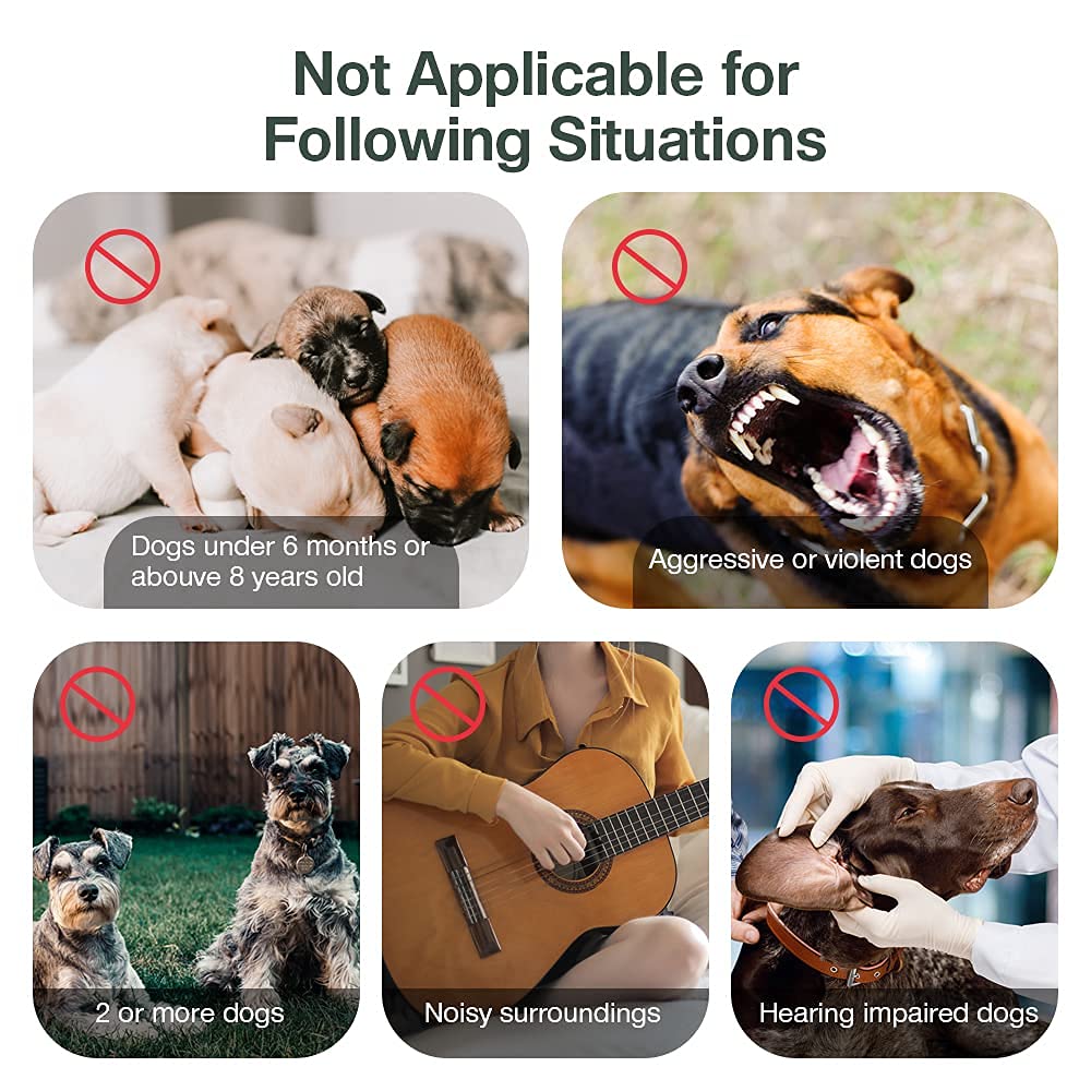 Nicht geeignet für taube Hunde, aggressive Tiere oder Welpen unter 6 Monaten. Gib deinem Hund bis zu 2 Wochen, um sich dran zu gewöhnen. Dann klappt’s mit der Ruhe!