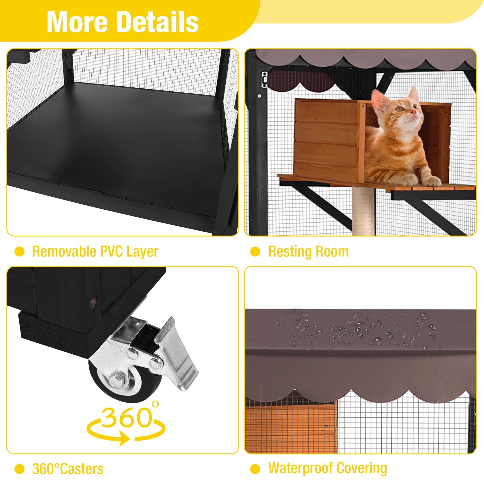 Das perfekte Zuhause für deine Samtpfoten! Dieses X-Zone Katzenhaus aus massivem Holz bietet auf 9,07 m² alles was deine Katze braucht. Mit wasserdichtem Asphaltdach, großem Balkon zum Sonnen und zwei Etagen zum Spielen und Schlafen. Das Dach lässt sich öffnen - super einfach zu reinigen! Die Rampe aus 100% Massivholz fault nicht und die PVC-Vorhänge an den Türen halten die Wärme drin. Für bis zu 3 Katzen bis 15lbs geeignet. Einfach montieren mit vorgebohrten Löchern. Ob Regen oder Sonne - deine Katze hat immer einen sicheren und gemütlichen Platz. Deine Katze wird es lieben!