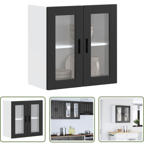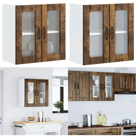 Wandschrank Mit Glastür 2er Set - Räuchereiche Design Schrank Für Wohnzimmer & Küche