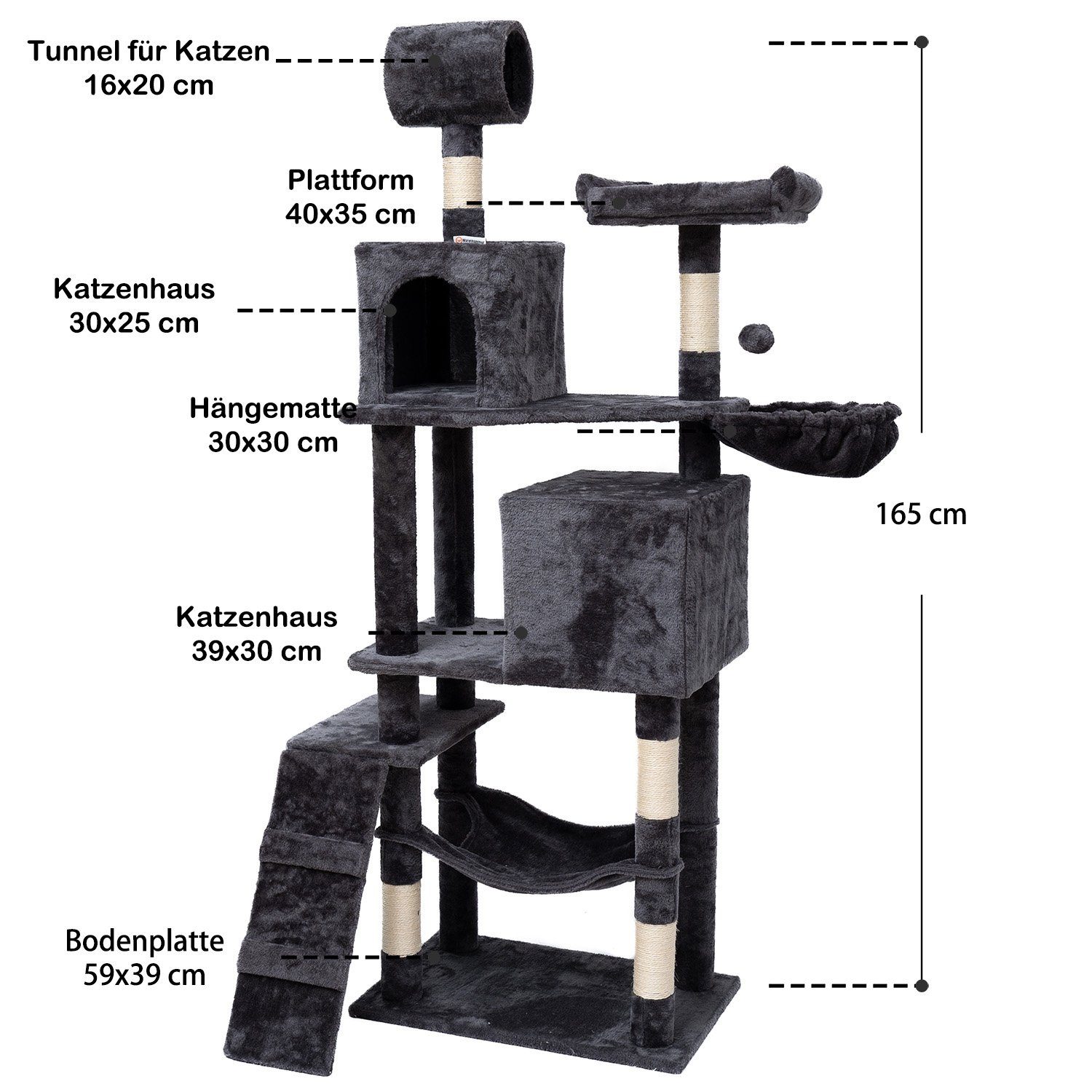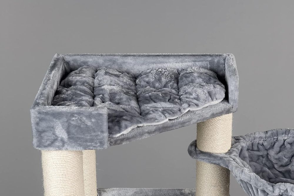 Ein Paradies für deine Samtpfote! Dieser 140cm hohe Kratzbaum bietet alles, was deine Katze braucht: stabile Sisalstämme zum Kratzen, eine gemütliche Schlafhöhle und große Plattformen zum Ausruhen und Beobachten. Hergestellt aus laminierter E1-Spanplatte, Kunstrattan und weichem Fleece. Leicht zu montieren, super stabil (bis 9,1kg Katzengewicht). Schützt deine Möbel vor Krallen und bietet deiner Katze Beschäftigung und Rückzugsmöglichkeiten. Dein Stubentiger wird es lieben!