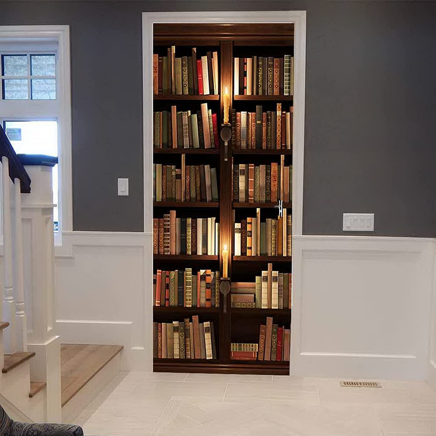 Bibliothek Türaufkleber 85x200 Cm - Selbstklebende 3D Türfolie Zum Abziehen & Aufkleben