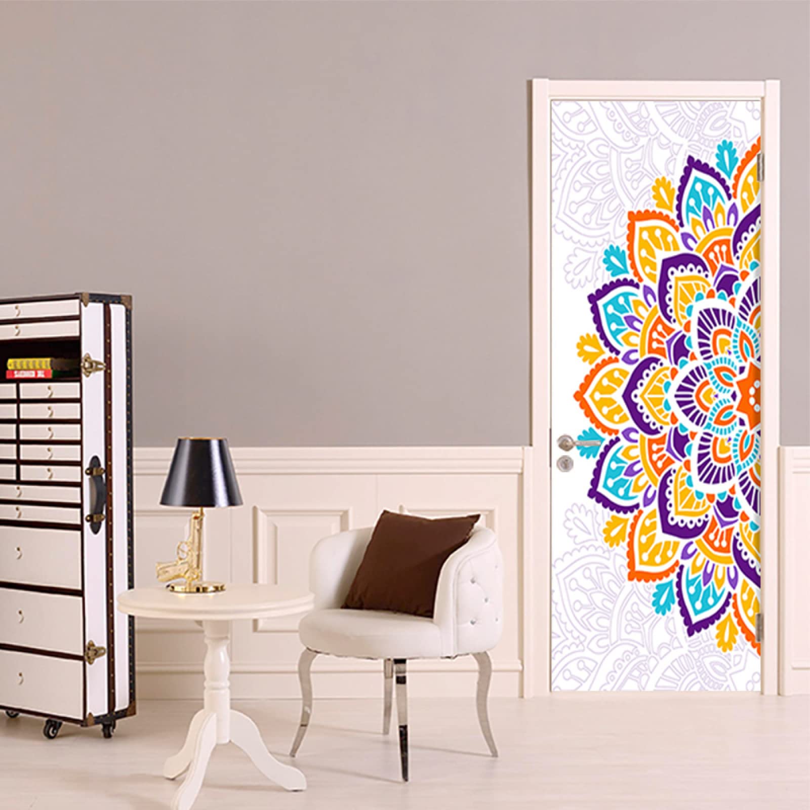 Größe: 86x200 cm (2-teilig). Material: Hochwertiges PVC. Design: Mandala 3D-Effekt. Besonderheit: Selbstklebend, wasserdicht, abnehmbar. Anwendung: Glatte Oberflächen. Ideal für: Türen, Wände, Möbel.