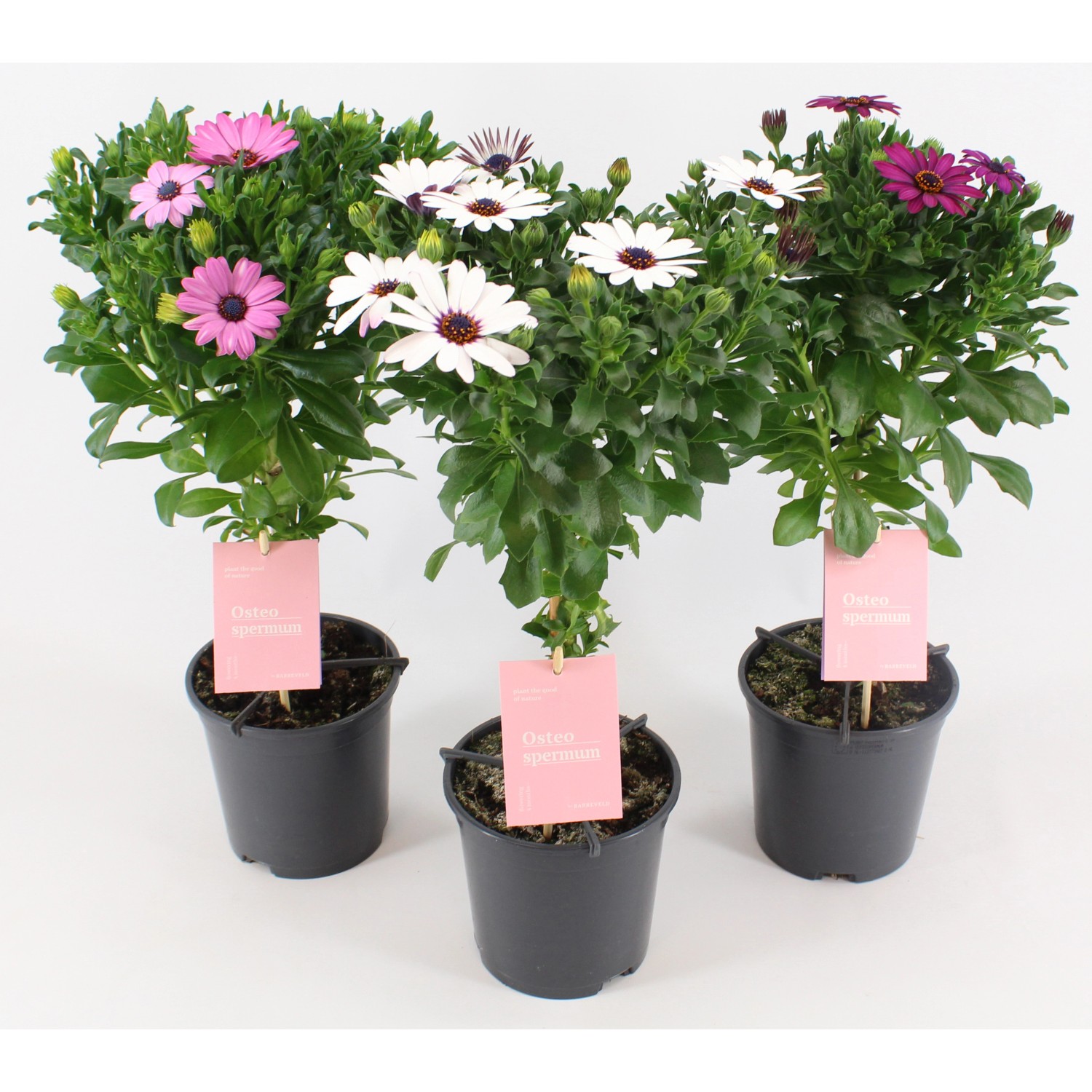 Suchst du nach Pflanzen, die deinen Garten oder Balkon in ein Blütenmeer verwandeln? Die Exotenherz Kapkörbchen (auch Kap-Margeriten genannt) sind genau das Richtige! Im Set bekommst du 3 kräftige Pflanzen in 11 cm Töpfen - schon ca. 30-35 cm hoch. Die gelben Blüten sind einfach umwerfend schön! Ursprünglich kommen die Kapkörbchen aus Südafrika und lieben deshalb die volle Sonne. Aber auch im Halbschatten gedeihen sie gut - je mehr Licht, desto mehr Blüten! Von März bis September blühen sie durchgehend - ein richtiger Dauerblüher also. Perfekt für Balkonkästen, Kübel, Beete oder sogar für Grabbepflanzung. Beim Gießen solltest du darauf achten, dass die oberste Erdschicht abgetrocknet ist - dann regelmäßig wässern. Alle 2-3 Wochen etwas Dünger gibt den Pflanzen extra Power. Ein kleiner Tipp: Schneide verblühte Stiele ab - das kurbelt das Blütenwachstum weiter an! Die Pflanzen wachsen aufrecht und können bis zu 40 cm hoch werden. Da es sich um Naturprodukte handelt, kann es leichte Abweichungen in Aussehen, Größe, Farbe und Form geben - das macht jede Pflanze einzigartig! Mit diesen Kapkörbchen holst du dir ein Stück Südafrika in deinen Garten - die knalligen Farben sorgen für gute Laune!