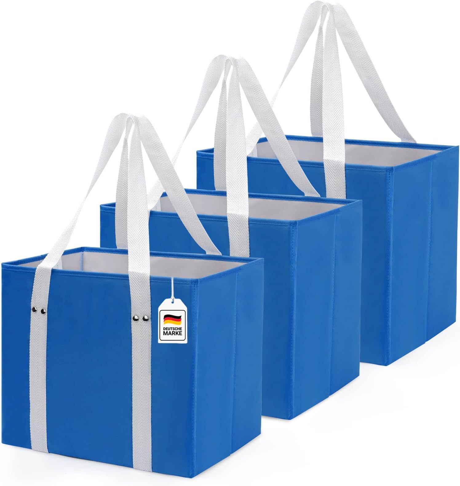 3 Faltbare Einkaufskörbe Aus Stabilem Polyester - Bis 30kg Belastbar