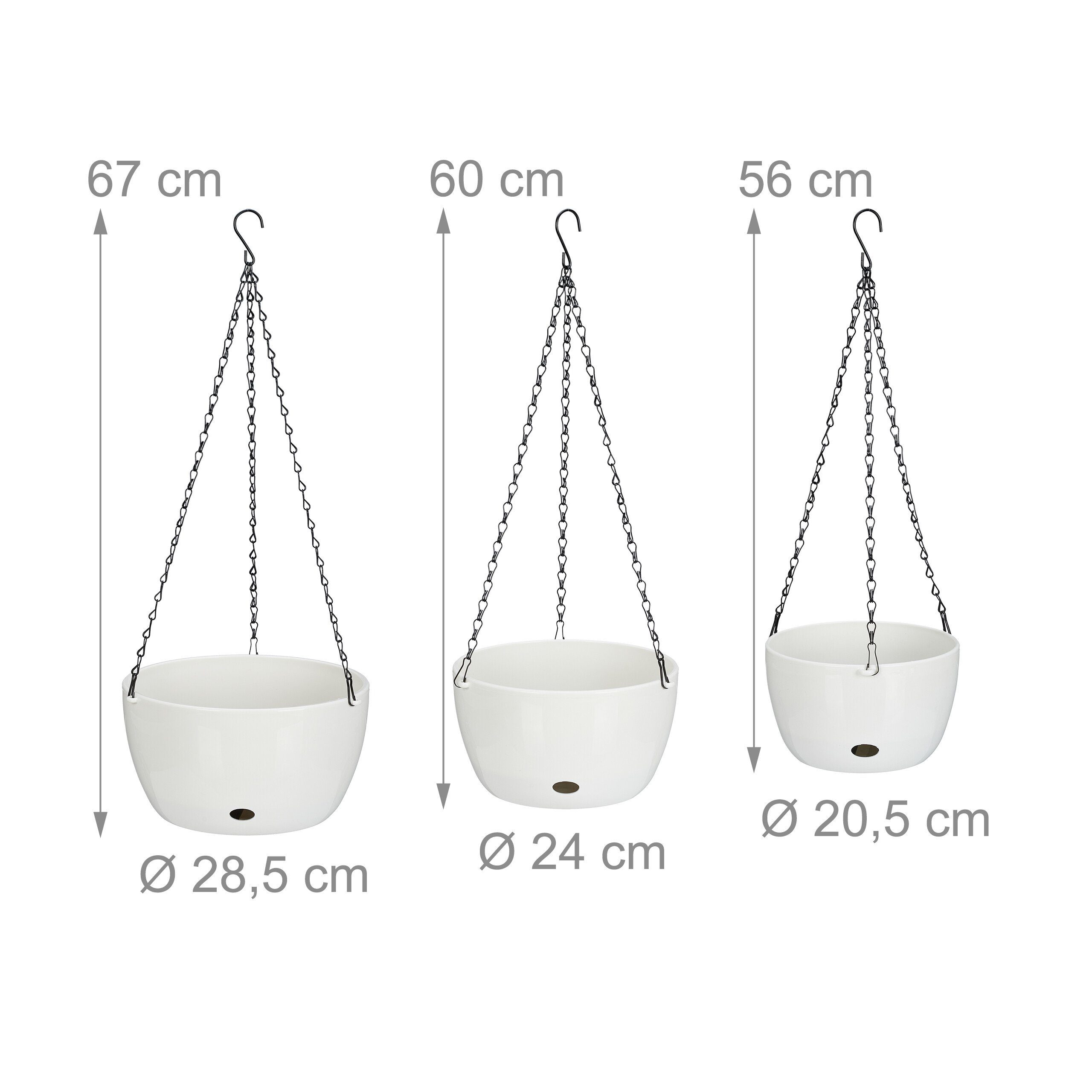 Jeder Korb hat Maße von 50x31 cm und kann bis zu 10 kg tragen. Perfekt für Ampelpflanzen wie Efeututen, Petunien oder Fuchsien. Die Ketten mit Haken ermöglichen dir, die Körbe einzeln aufzuhängen oder schnell miteinander zu verbinden.