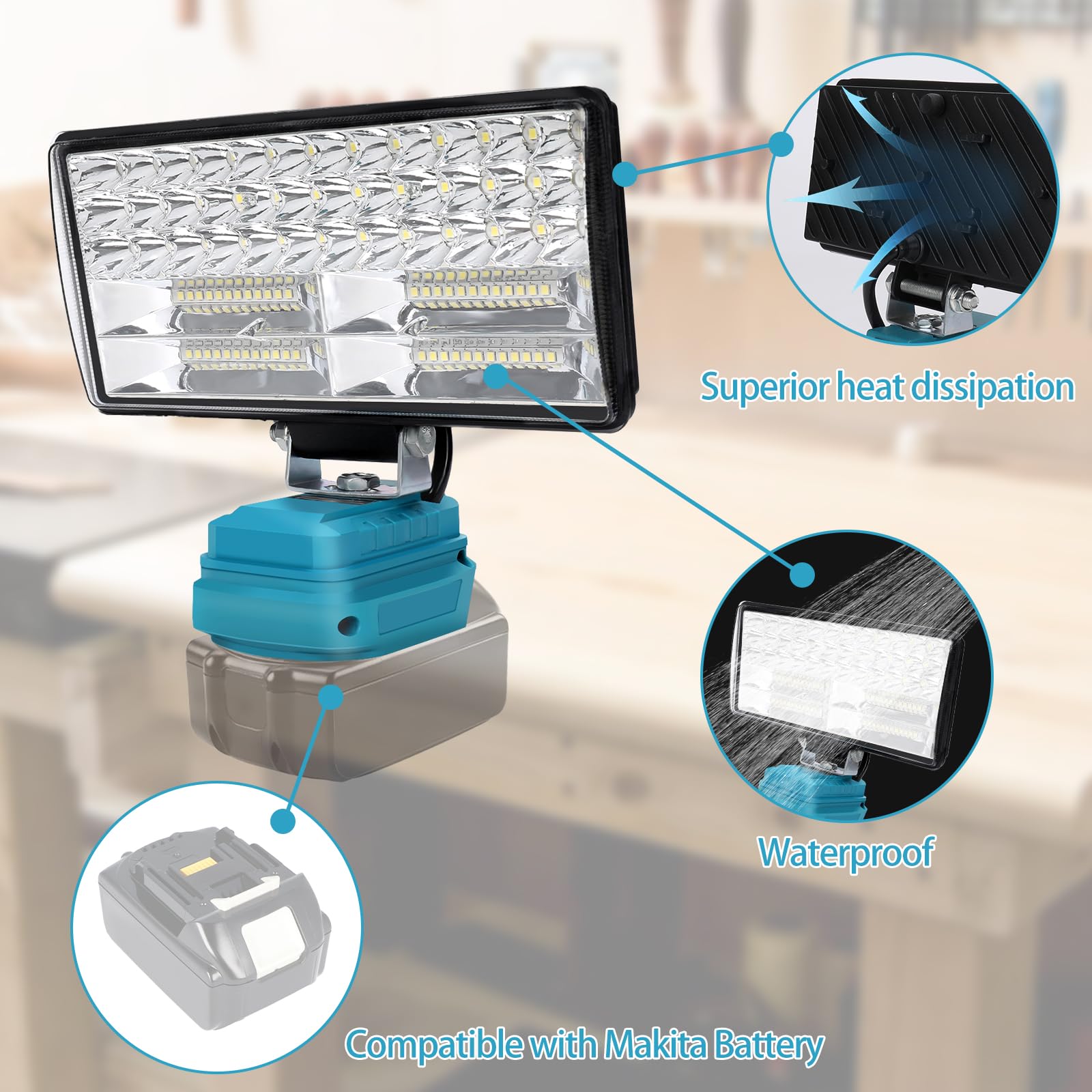 Endlich eine Arbeitsleuchte, die wirklich hält, was sie verspricht! Diese LED Arbeitsleuchte für Makita 18V Akkus ist ein absoluter Game-Changer für jede Baustelle, Werkstatt oder Camping-Tour. Mit sagenhaften 8000 Lumen im Hochmodus und 4600 Lumen im Sparmodus hast du immer die richtige Beleuchtung zur Hand. Der 120° drehbare Lampenkopf mit 84 LED-Perlen sorgt für eine perfekte Ausleuchtung selbst in den dunkelsten Ecken. Kompatibel mit allen gängigen Makita 18V Akkus wie BL1815, BL1830, BL1845 und BL1850 - Akku natürlich nicht im Lieferumfang enthalten. Das absolute Highlight: USB A und Type-C Anschlüsse zum Laden deiner Geräte! Aus wärmeableitendem Kunststoff mit Kühlrippen und Schutz vor Überhitzung, Überlastung und Niederspannung. Egal ob bei Autoreparaturen, auf der Baustelle oder beim Camping - diese Lampe ist dein zuverlässiger Begleiter. Einfach den Akku rein, anschalten und loslegen!