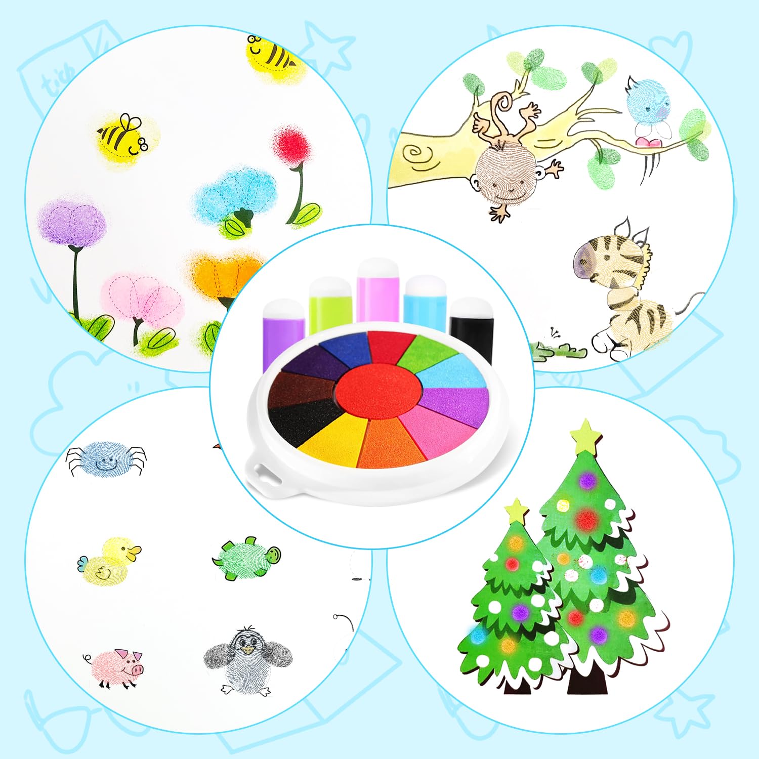 13 Farben Stempelset Für Kinder - Abwaschbare Fingerfarben Mit Zubehör