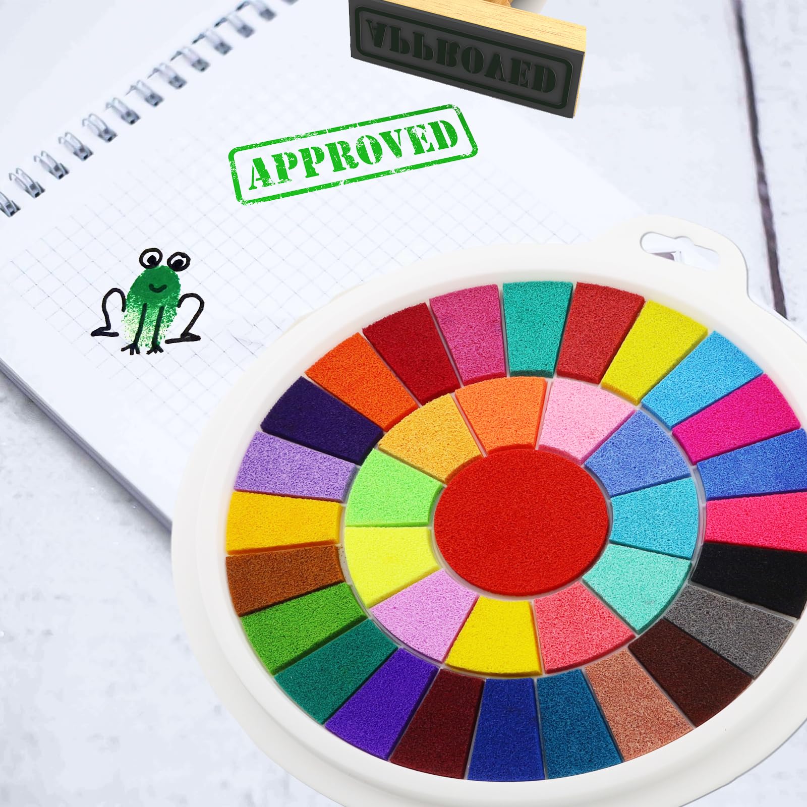 Kreativer Spaß für kleine Künstler! Dieses Stempelset mit 13 leuchtenden Farben lässt Kinderherzen höher schlagen. Die Fingerfarben sind abwaschbar - keine Sorgen um Flecken auf Kleidung oder Möbeln! Im Set enthalten: 13 Farb-Stempelkissen, 30 Fingerstempel-Bilder, 10 leere Karten und 5 Handmal-Applikatoren. Der verdickte Schwamm speichert viel Farbe und trocknet nicht so schnell aus. Perfekt für Scrapbooking, Karten basteln oder einfach malen. Hochwertiges PVC-Material und spezieller Schwammkopf - waschbar und wiederverwendbar. Fördert Kreativität und Feinmotorik. Ein ideales Geschenk für Geburtstage oder einfach so! Stundenlanger Bastelspaß garantiert!