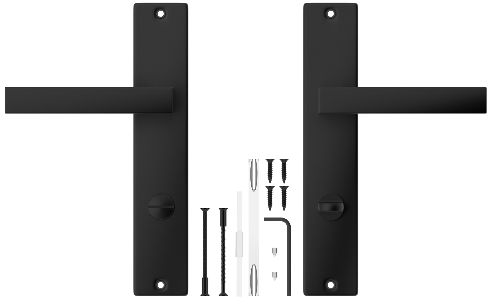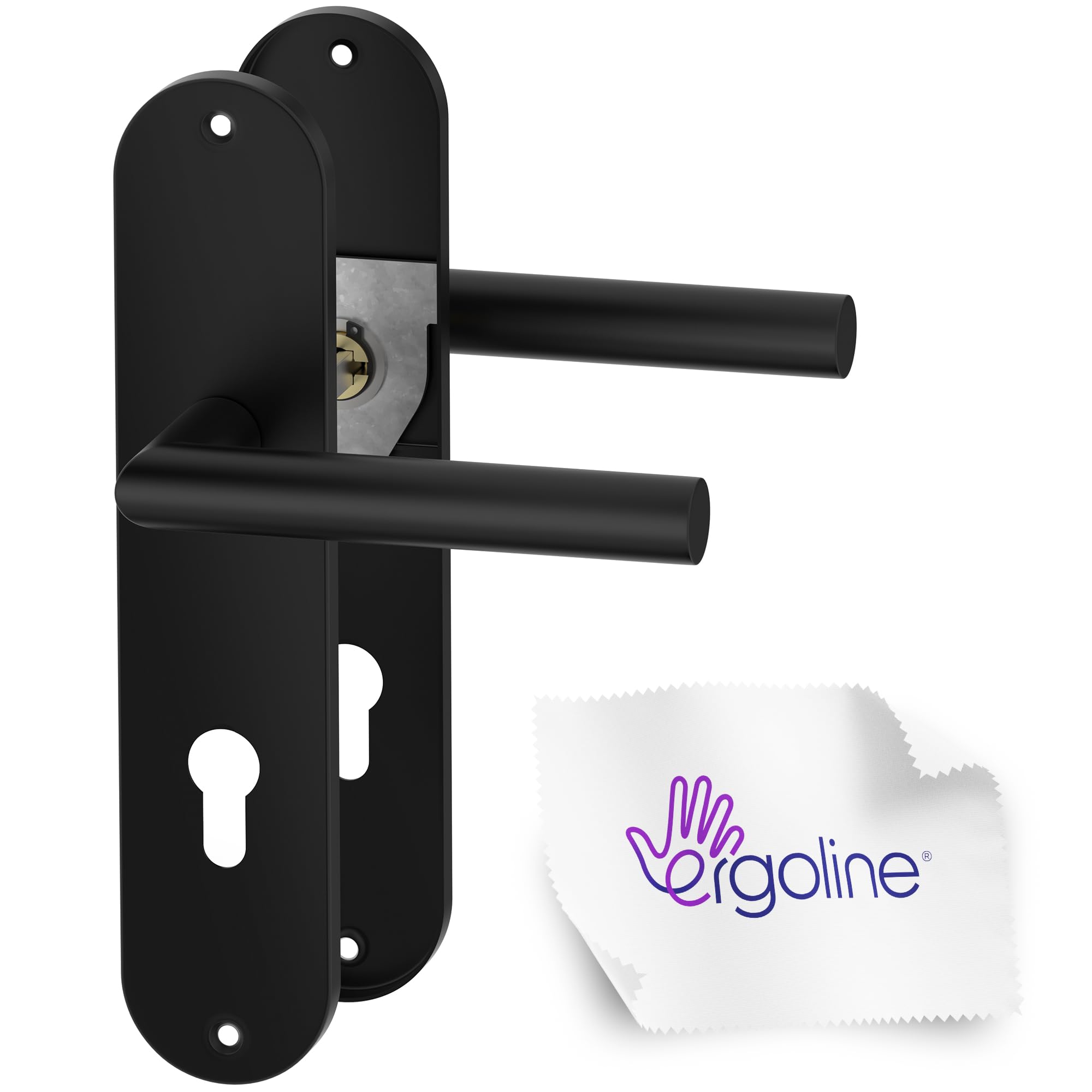 Deine Tür braucht ein Update? Mit diesem kompletten Türbeschlag-Set von ERGO Line machst du aus alten Türen echte Hingucker! Das Sigma-Modell in mattem Schwarz sieht nicht nur super modern aus, sondern ist auch extrem funktional. Das große Langschild deckt alte Bohrlöcher perfekt ab - ideal für Renovierungen. Das Set ist für Profilzylinder-Schlösser (PZ) geeignet und passt auf Standard-Türen mit 34-48 mm Stärke. Die Metallkonstruktion mit Federunterstützung sorgt dafür, dass die Klinke immer zuverlässig zurückgeht. Die Montage ist super einfach - alles Nötige ist im Lieferumfang enthalten. Ob im Flur, Schlafzimmer oder Wohnzimmer - dieser Türgriff setzt stylische Akzente und macht jede Tür wieder wie neu!