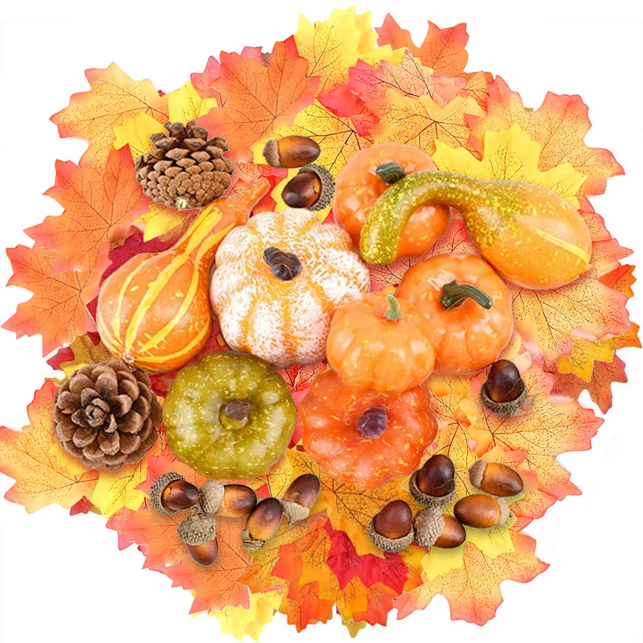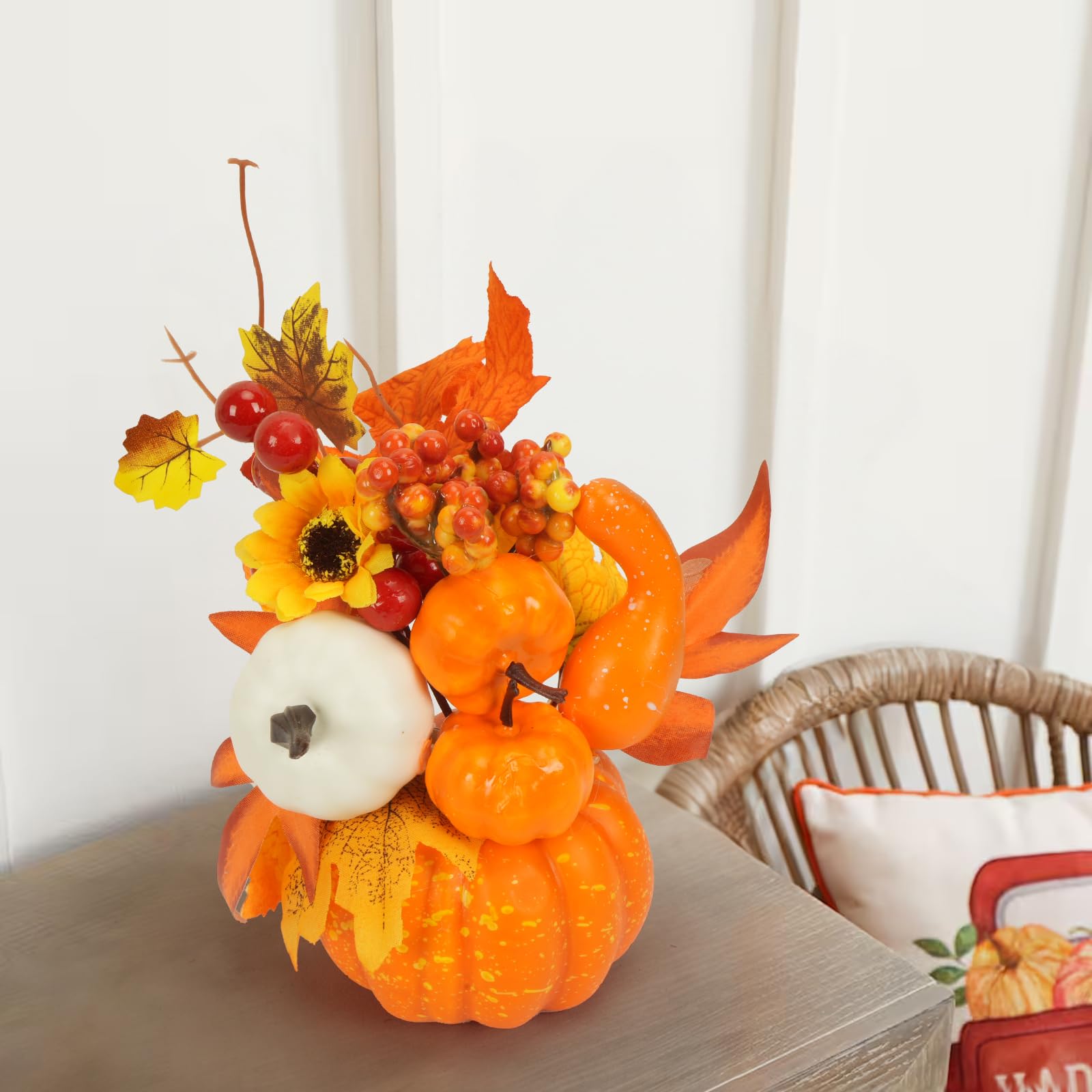 Lieawy Künstliche Kürbis Deko - Herbstdeko Mit Ahornblättern & Sonnenblumen 20x19cm