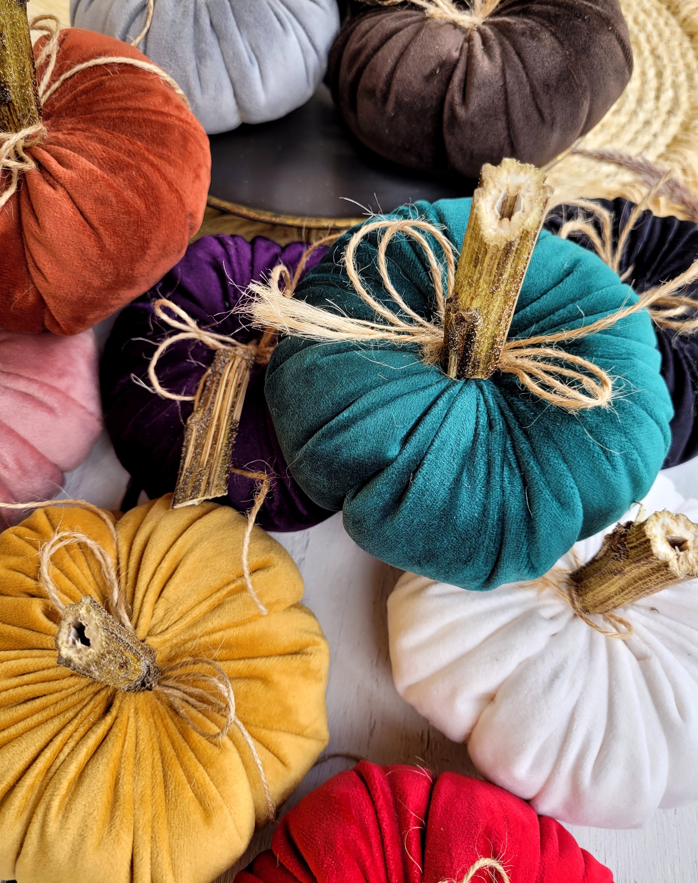Samt Kürbis Deko Set - Handgemachte Herbstdekoration Für Halloween