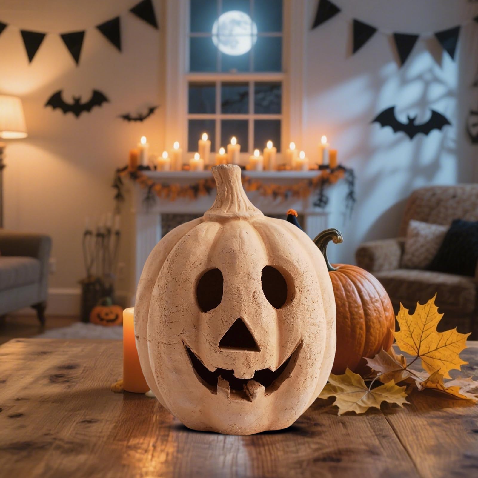 Gruselspaß ohne Gefahr! Diese handgefertigte Kürbis-Laterne aus robustem Harz bringt perfekte Halloween-Stimmung in dein Zuhause. Dank flammenlosem Leuchten absolut sicher für innen und außen. Perfekt für Garten, Rasen, Haustür oder Wohnzimmer. Die Laterne hat ein hohles Inneres und offenen Boden - ideal für LED-Lichter oder Kerzen. Die wetterfeste Oberfläche ist schmutzabweisend und komplett wasserdicht. Erhältlich in verschiedenen Größen: 15,5x19cm, 25x22cm oder 21x35cm. Damit wird deine Halloween-Dekoration zum echten Hingucker! Ob auf der Veranda, am Kamin oder auf dem Tisch - diese Laterne sorgt für eine unvergessliche gruselige Atmosphäre. Ein Must-Have für alle Halloween-Fans!