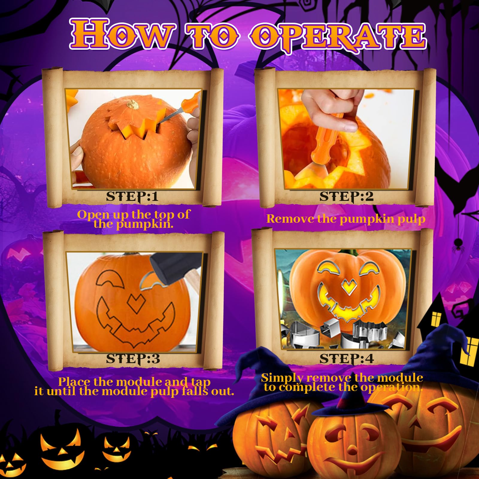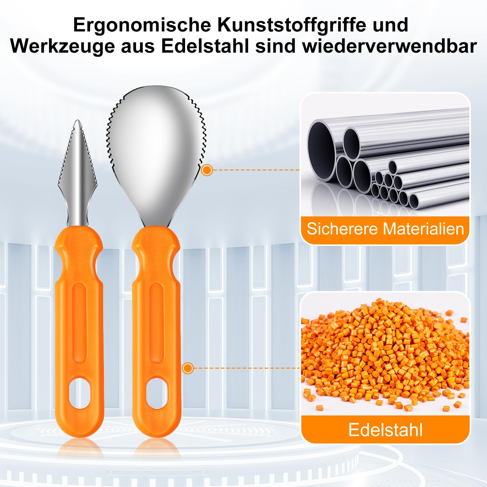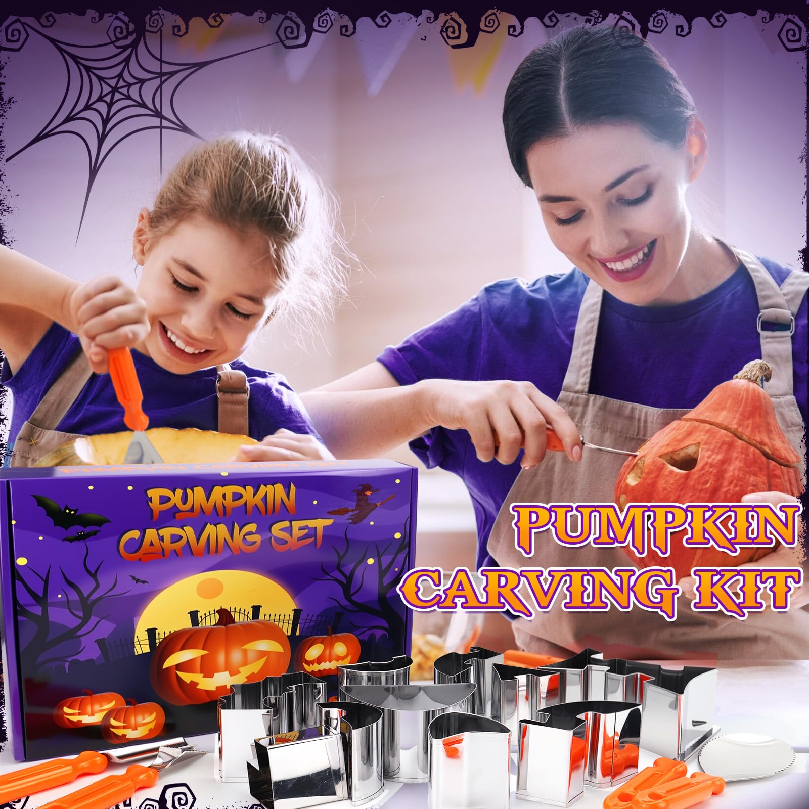 Halloween Kürbis Schnitzset - 19-teilig Mit Ausstechformen & Vorlagen Für Kinder & Erwachsene