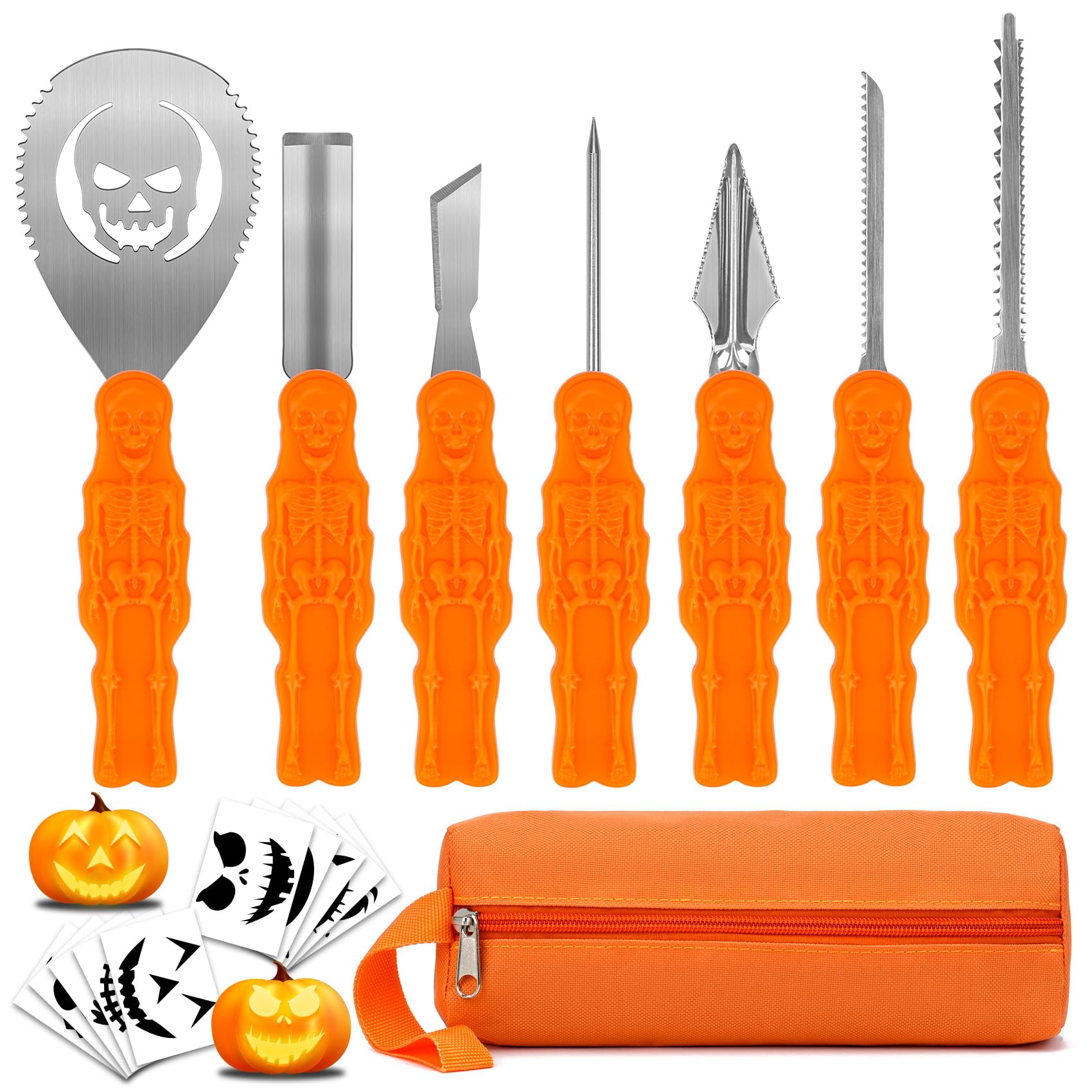 Halloween Kürbis Schnitzset - 7-teiliges Werkzeug Set Mit 10 Vorlagen