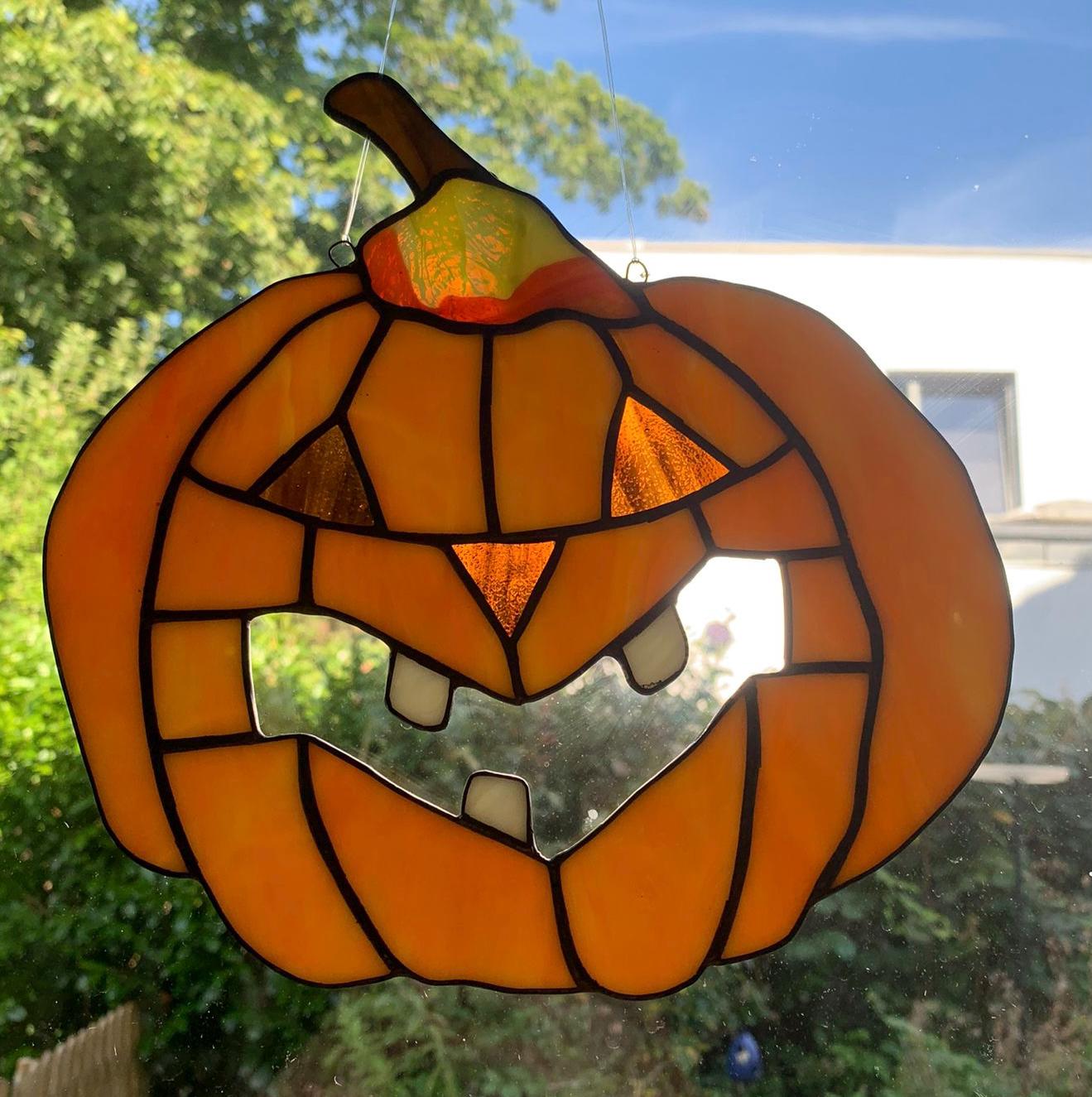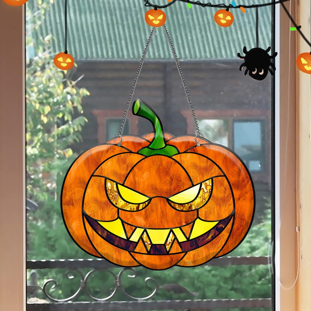 Halloween Kürbis Sonnenfänger - Buntglas Deko Für Fenster & Garten