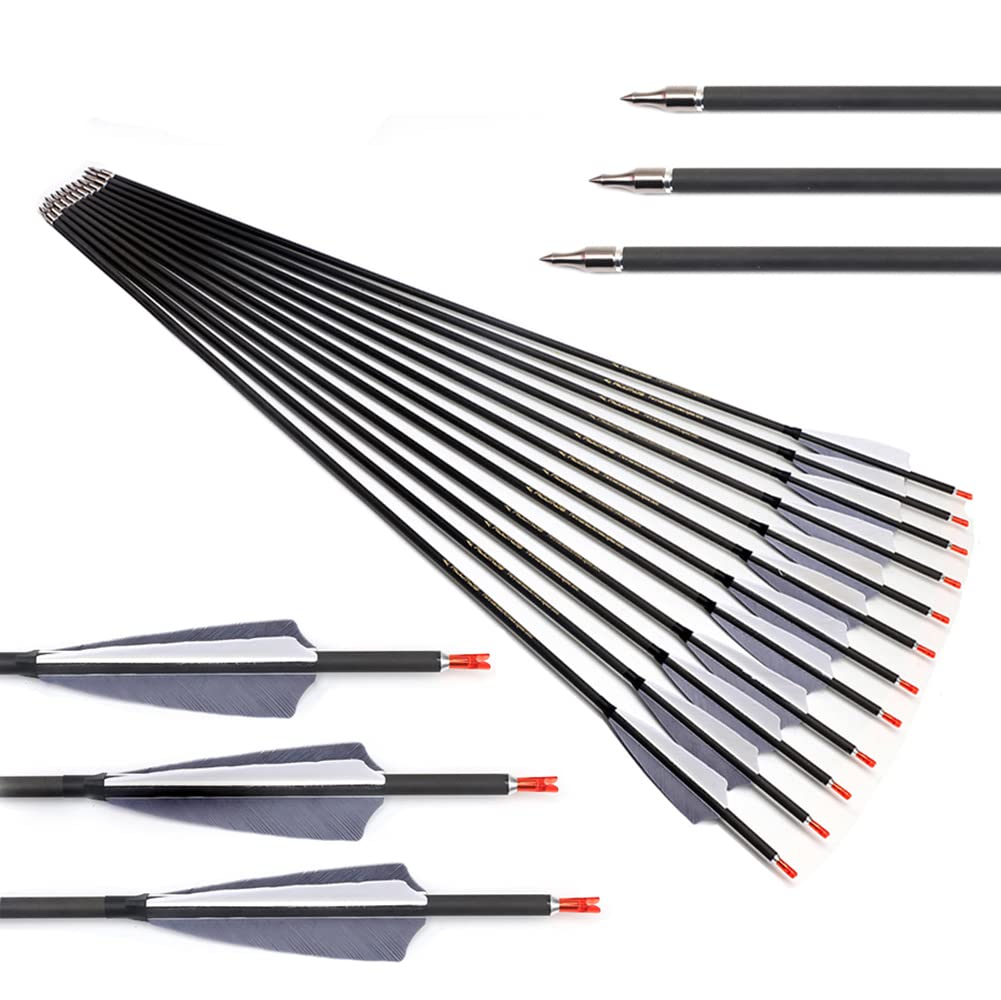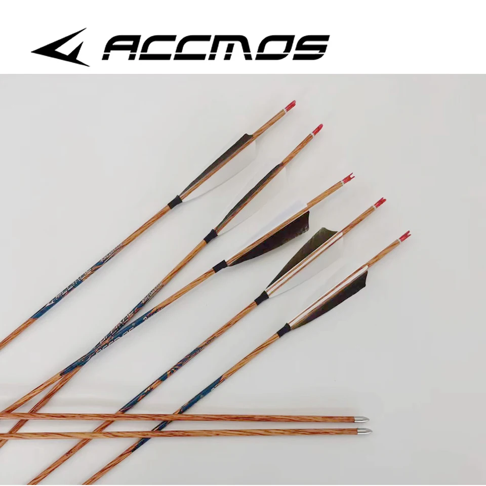 ACCMOS Carbon-Pfeilschäfte Für Bogenschießen - 12er Set Mit Holzoptik, Spine 600-800