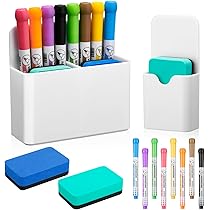 Schluss mit dem Chaos am Whiteboard! Dieses komplett Set hat alles, was du für perfekte Präsentationen brauchst. Enthalten sind zwei magnetische Stiftehalter in unterschiedlichen Größen - einer groß mit verstellbarer Trennwand, einer klein für die Basics. Dazu gibt's 8 bunte Whiteboard-Marker, 2 magnetische Schwämme und sogar 6 wasserlösliche Kreidestifte. Die Halter haben starke Magnete auf der Rückseite, die wirklich halten - kein Rutschen, kein Fallen! Super praktisch: Du kannst die Trennwand im großen Halter frei verschieben und so den Platz optimal nutzen. Ob fürs Büro, Klassenzimmer oder Home-Office - damit behältst du immer den Überblick. Die Marker schreiben super und lassen sich leicht abwischen, die Schwämme sind saugstark und haften sicher am Board. Einfach anbringen und sich über die neue Ordnung freuen!