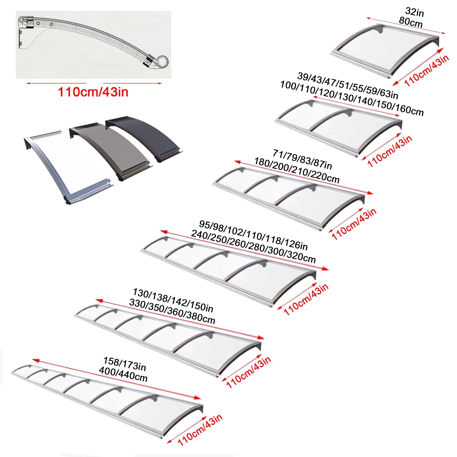 ZXCASDF Türdach Vordach 150x360cm - Bogendach UV-Schutz Selbstreinigend