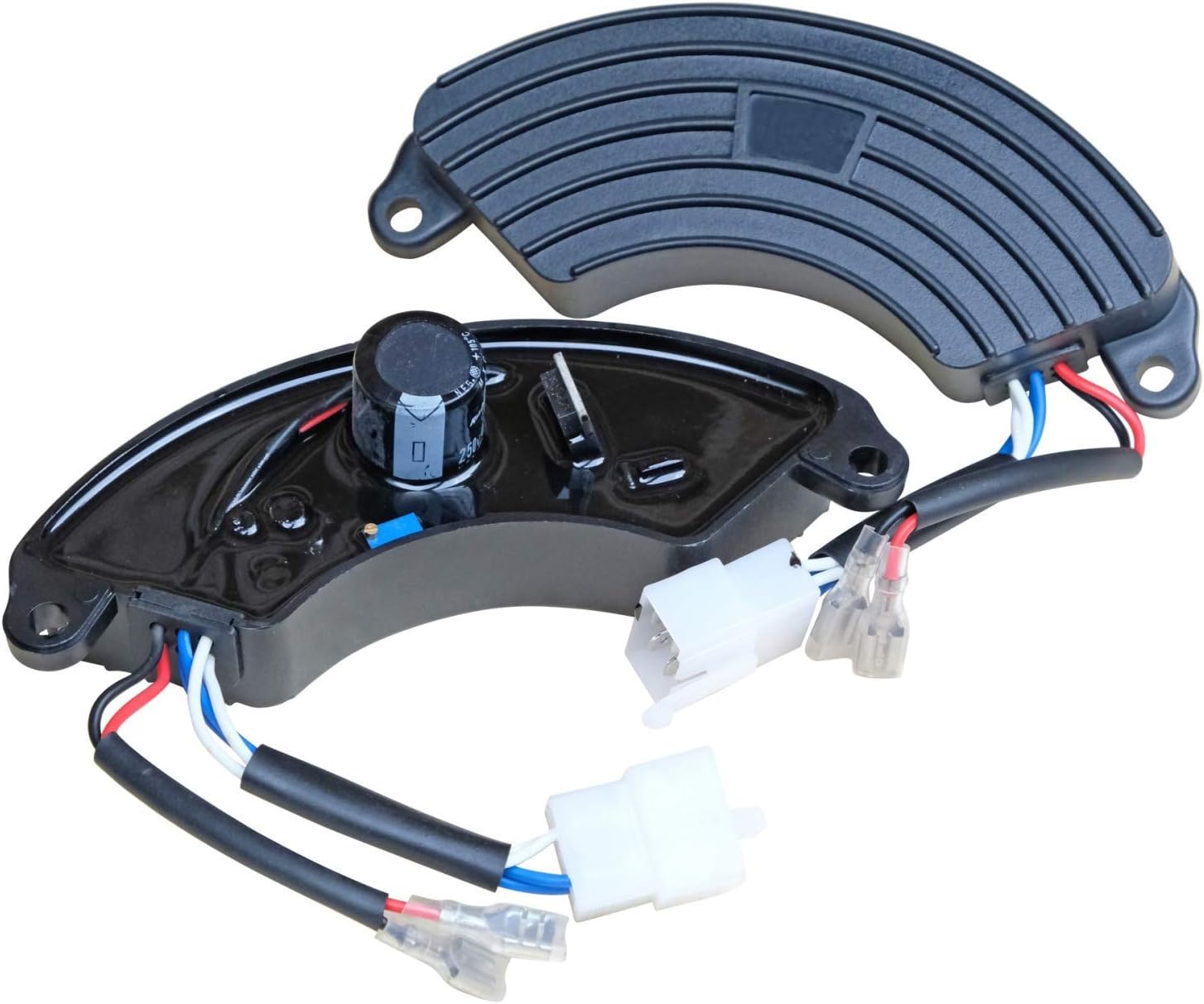 Dein Generator spielt verrückt? Dieser AVR Spannungsregler bringt ihn wieder in den Griff! Kompatibel mit Generatoren von 3-10 kW Nennleistung - perfekt für Honda, Champion, Predator und viele mehr.\n\nMit Halbmond-Form und 6 Anschlussdrähten (4 Schnellverbinder + 2 Einzeldrähte) ist die Montage super einfach. Einfach alte Platine raus, neue rein - die zwei Schrauben halten alles sicher.\n\nDer einstellbare Regler sorgt für stabile Spannung und schützt deine angeschlossenen Geräte. Inklusive Kohlebürste für Komplett-Service. Aus robusten Materialien für lange Lebensdauer.\n• Leistung: 3-10 kW Generatoren\n• Form: Halbmond/Rund\n• Anschlüsse: 6 Drähte\n• Montage: 2 Schrauben (14,7cm Abstand)\n• Kompatibel: Honda, Champion, Predator u.v.m.\n• Inklusive: 1x Kohlebürste
