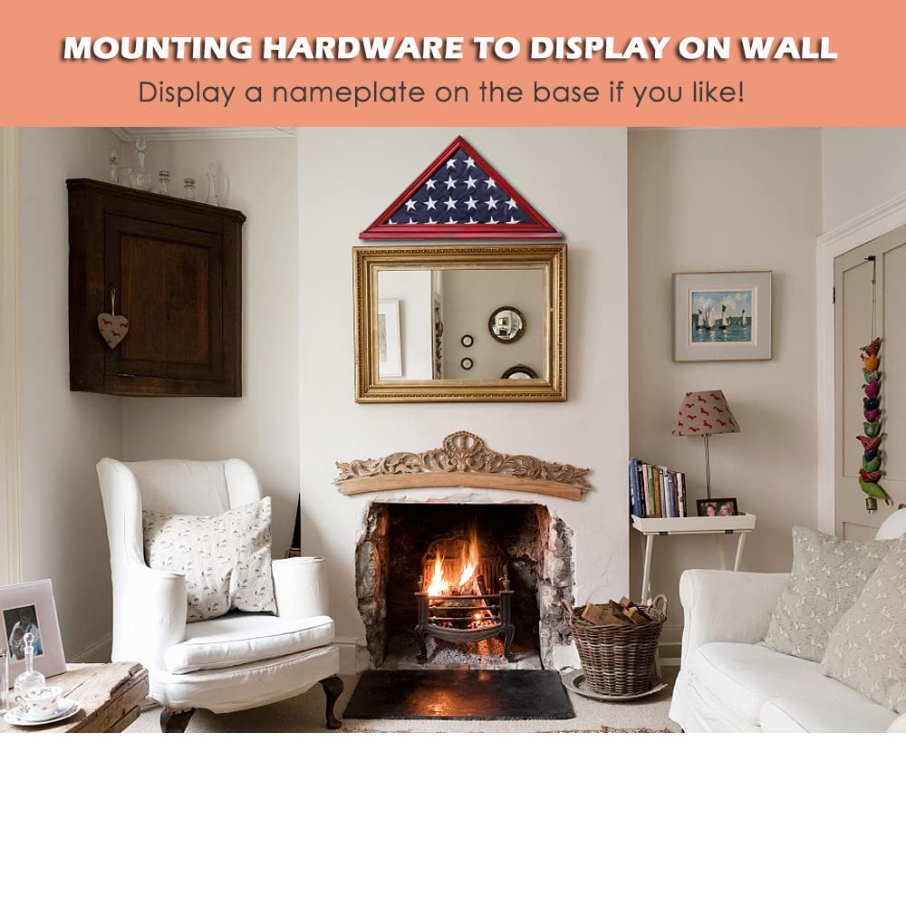 Dreieckige Flaggen-Vitrine Für Veteranen-Fahnen - Echtglas Schattenbox In Kirsche